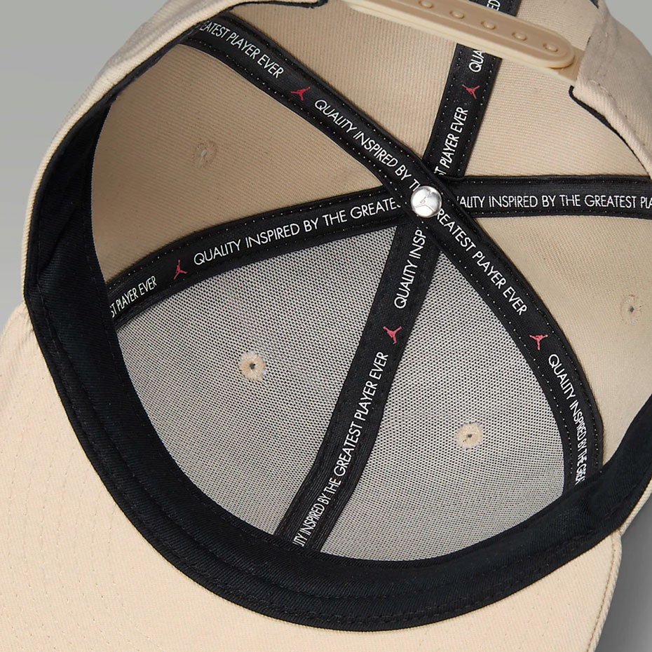 Ключевой особенностью этой модели является встроенная повязка, которая обеспечивает дополнительный комфорт и помогает удерживать кепку на месте даже в активные дни. Регулируемая застежка позволяет легко настроить посадку под индивидуальные предпочтения, а вышитый логотип Jumpman на передней панели добавляет узнаваемости и стиля.