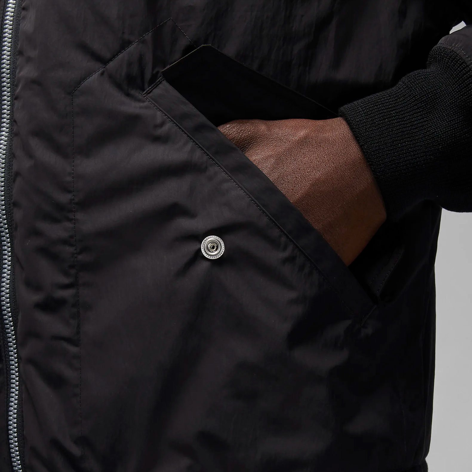 Карманы на кнопках позволяют безопасно хранить ключи и телефон. Края, воротник и манжеты выполнены из ткани в рубчик, что обеспечивает дополнительную защиту от непогоды.