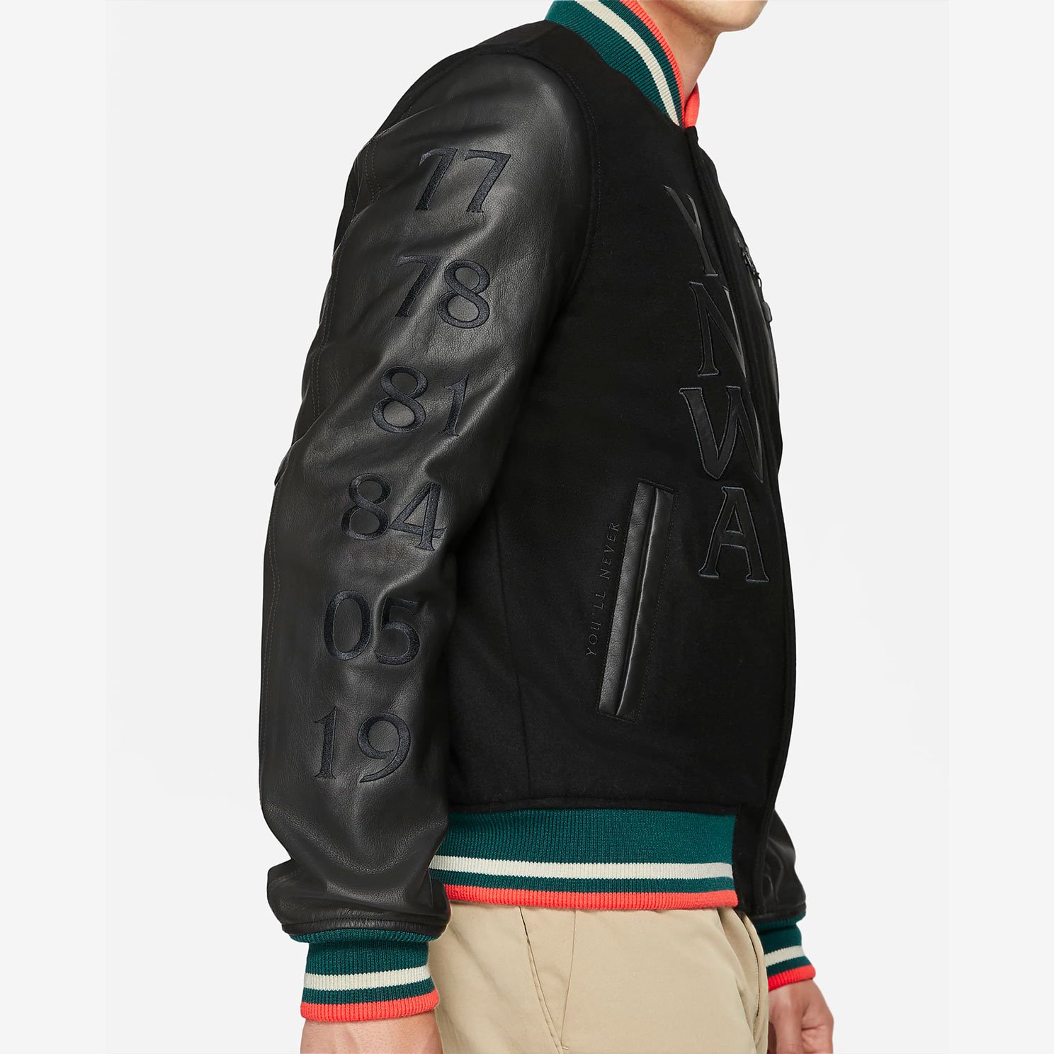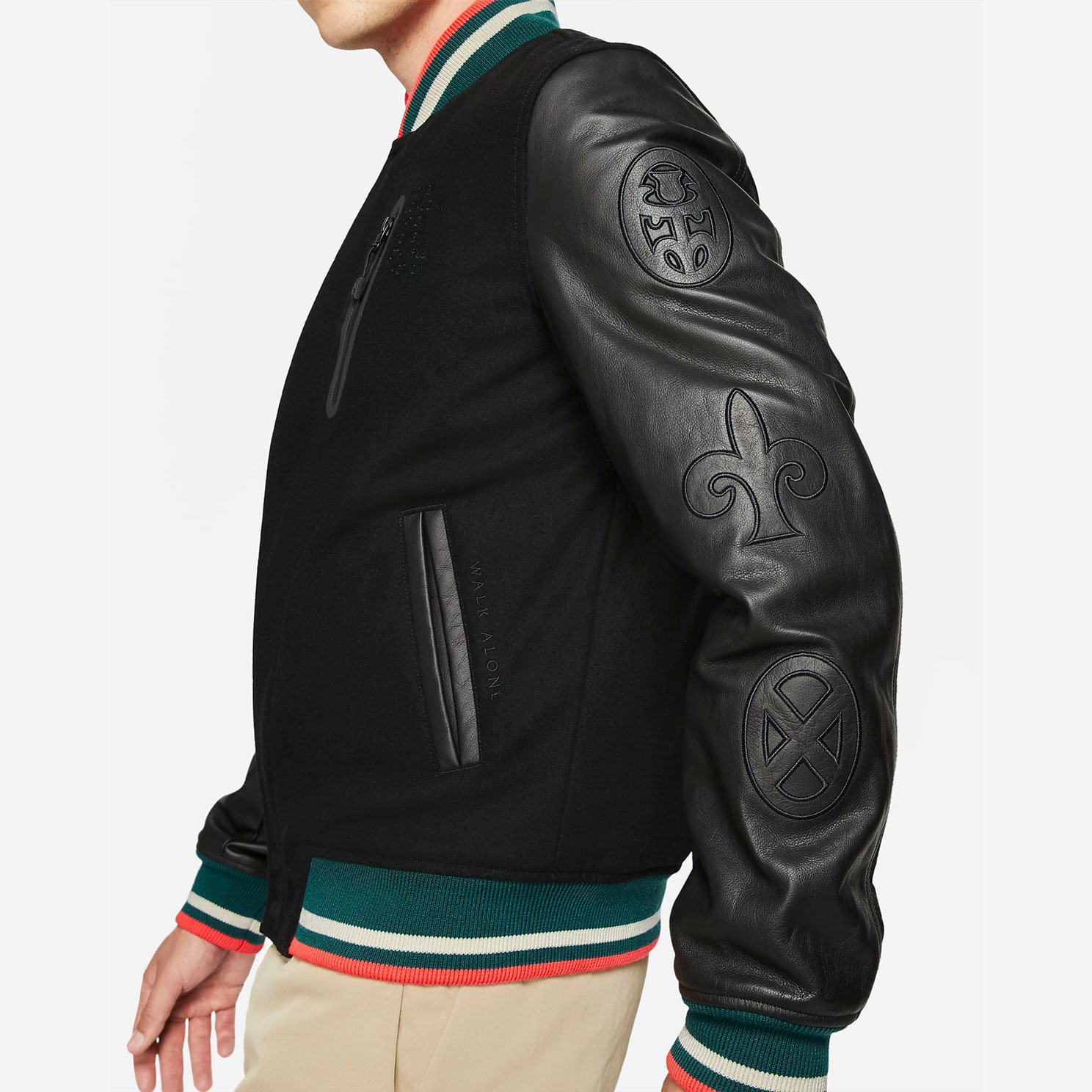 - Кожаные рукава обеспечивают комфорт и создают первоклассный образ. Воротник, манжеты и нижняя кромка выполнены в цветах «Красных».