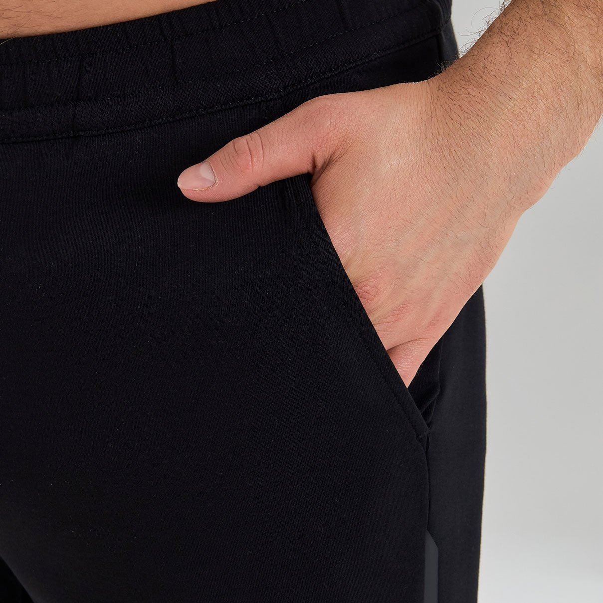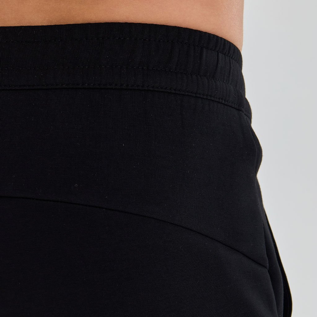 Модель слегка заужена к низу и дополнена трикотажными манжетами, которые придают образу современный силуэт. Эластичный пояс с регулируемой шнуровкой гарантирует удобную посадку, а два боковых кармана подойдут для хранения мелочей. Эти брюки — идеальный выбор для активного отдыха и повседневной носки.