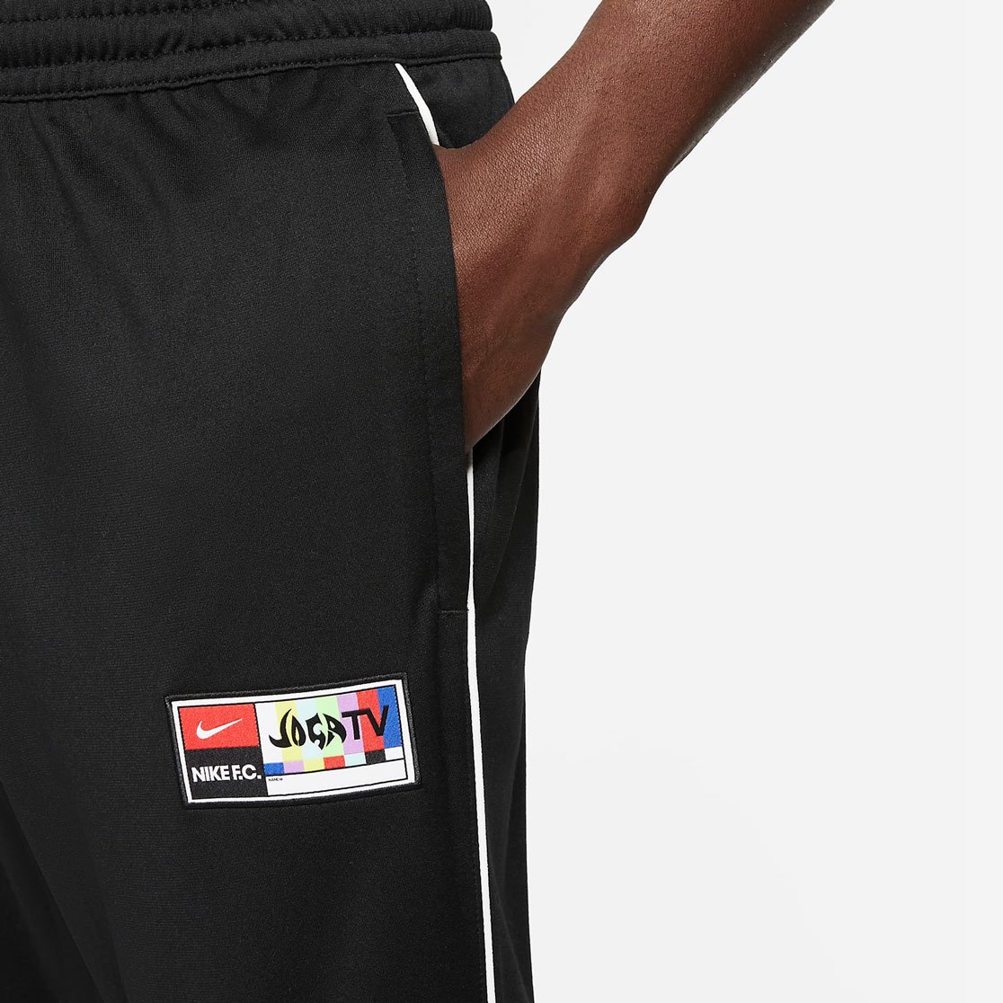 В 2006 году Nike запустили кампанию Joga Bonito, призванную напомнить нам всем, что нужно играть во имя любви к спорту — с достоинством и оптимизмом. Брюки Nike F.C. вдохновлены оригинальной рекламной кампанией, о чем свидетельствует тканая этикетка Joga TV на штанине. Эта модель выполнена из ткани, в составе которой содержится не менее 75% переработанного полиэстера.