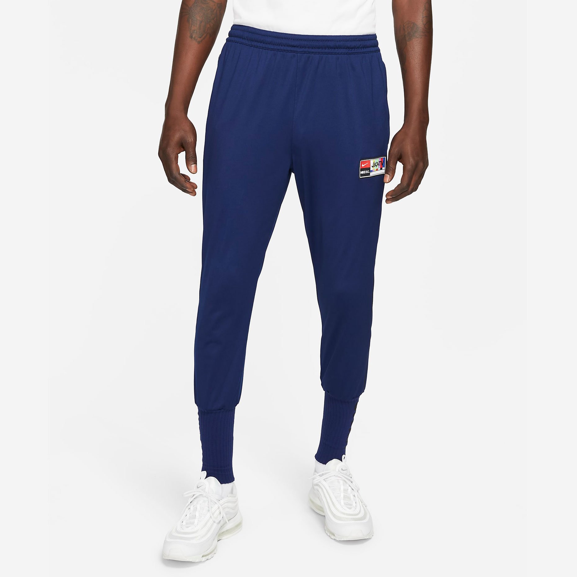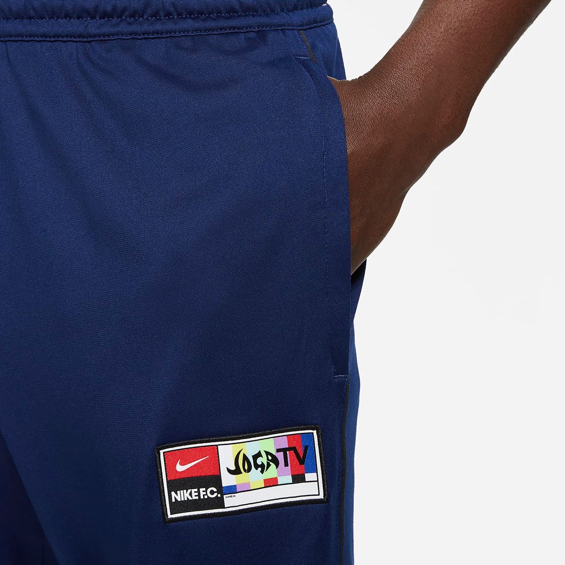 В 2006 году Nike запустили кампанию Joga Bonito, призванную напомнить нам всем, что нужно играть во имя любви к спорту — с достоинством и оптимизмом. Брюки Nike F.C. вдохновлены оригинальной рекламной кампанией, о чем свидетельствует тканая этикетка Joga TV на штанине. Эта модель выполнена из ткани, в составе которой содержится не менее 75% переработанного полиэстера.