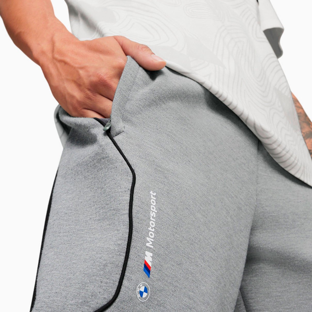 Логотип BMW M Motorsport, расположенный на бедре, подчеркивает принадлежность к премиальной марке и делает эти брюки отличным выбором как для повседневного ношения, так и для активного отдыха.