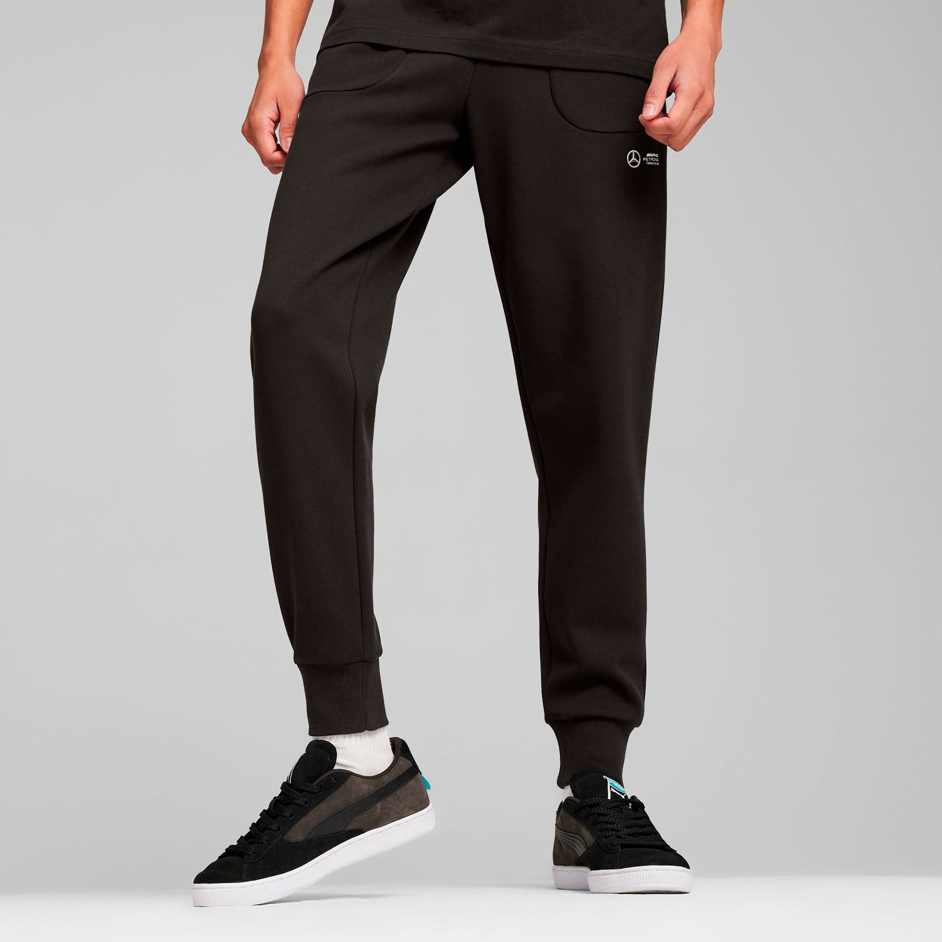 Брюки Puma Mercedes-AMG Petronas Motorsport Sweatpants — это идеальный выбор для тех, кто хочет поддержать свою любимую команду Формулы-1 в классическом стиле, не жертвуя комфортом.