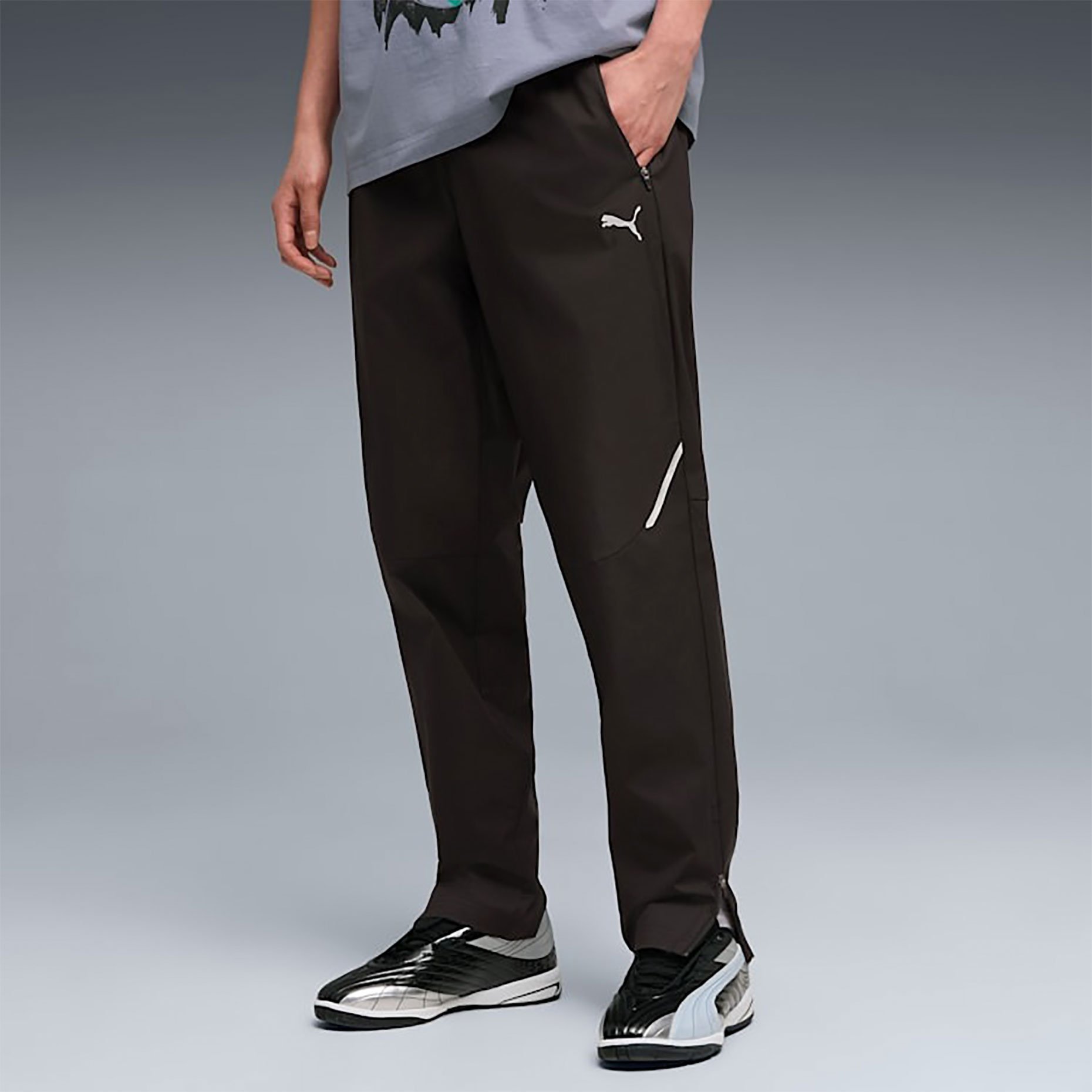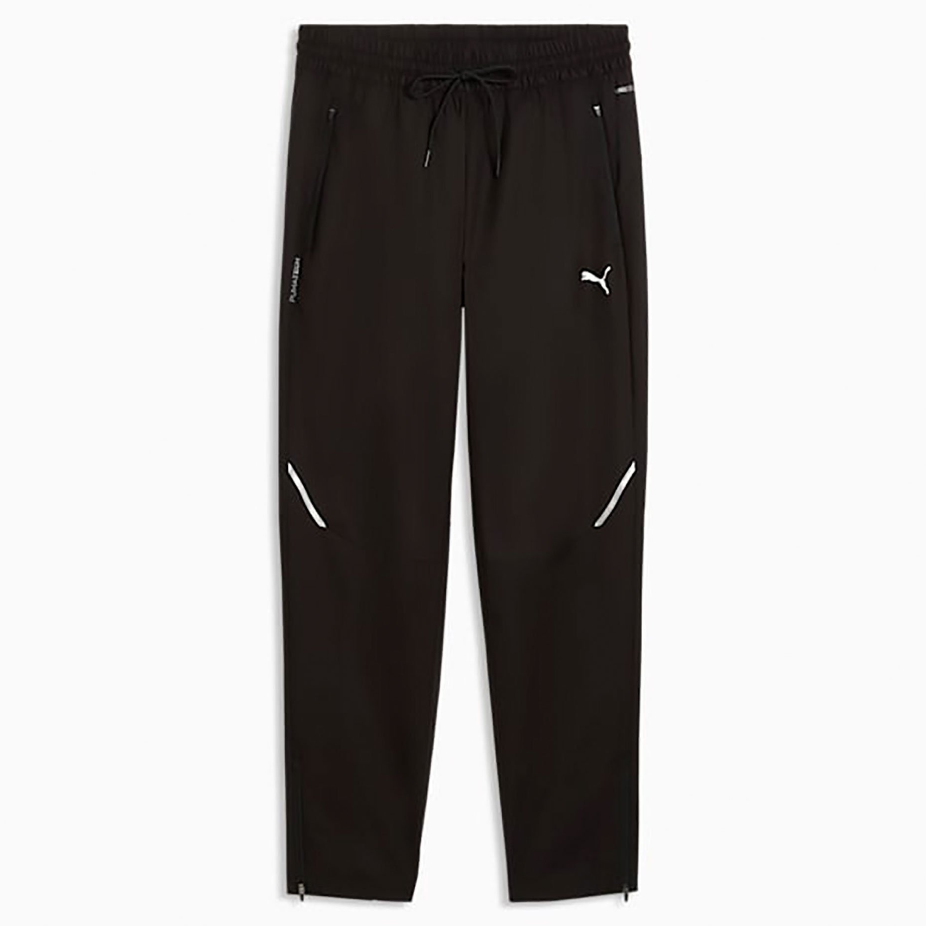 Эластичный пояс с внутренним шнурком позволяет регулировать посадку по фигуре, а аккуратные манжеты создают завершённый силуэт. Современный дизайн PUMATECH подчёркивается лаконичными линиями и фирменным стилем Puma, что делает брюки универсальными для спорта и повседневного гардероба.