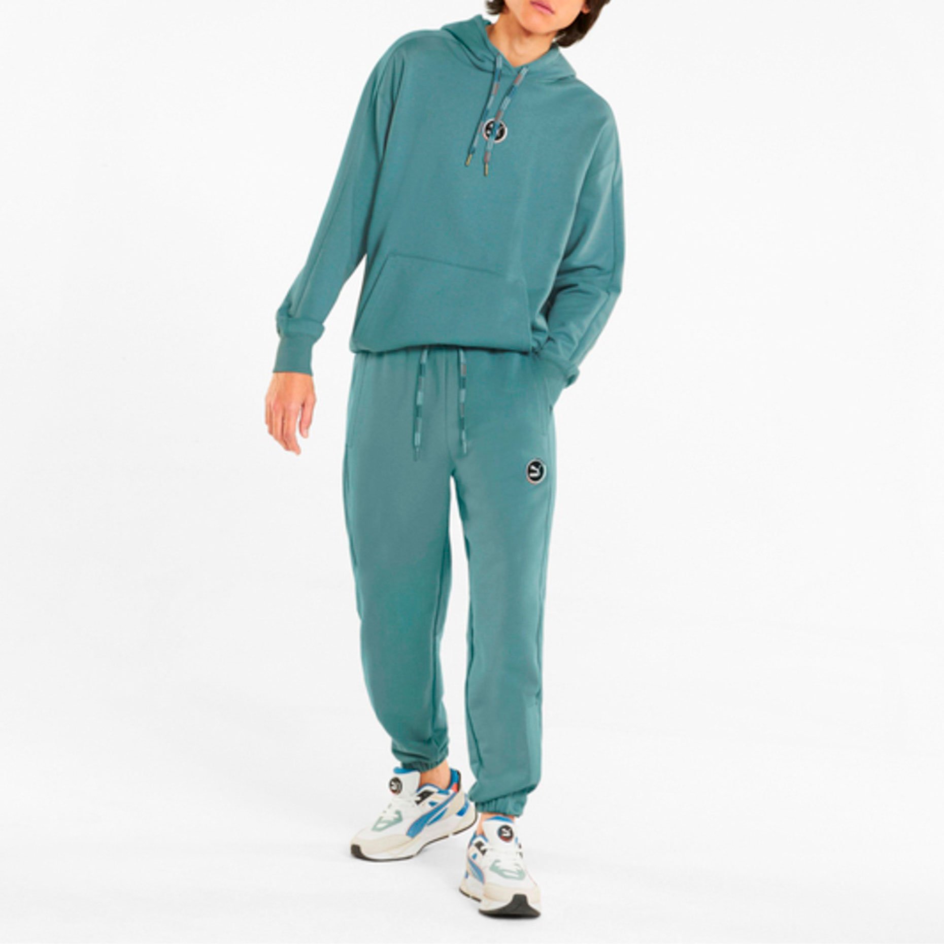 Классические штаны Puma T7 GO FOR Sweatpants идеальны для прогулок или просто для отдыха дома на выходных. Модель отличает наличие боковых карманов, а также кармана на молнии – сзади. За идеальную посадку отвечают эластичный пояс с внешним шнурком и эластичные «манжеты» с кнопками/пуговицами и молниями сбоку. Подходят для мужчин и женщин.