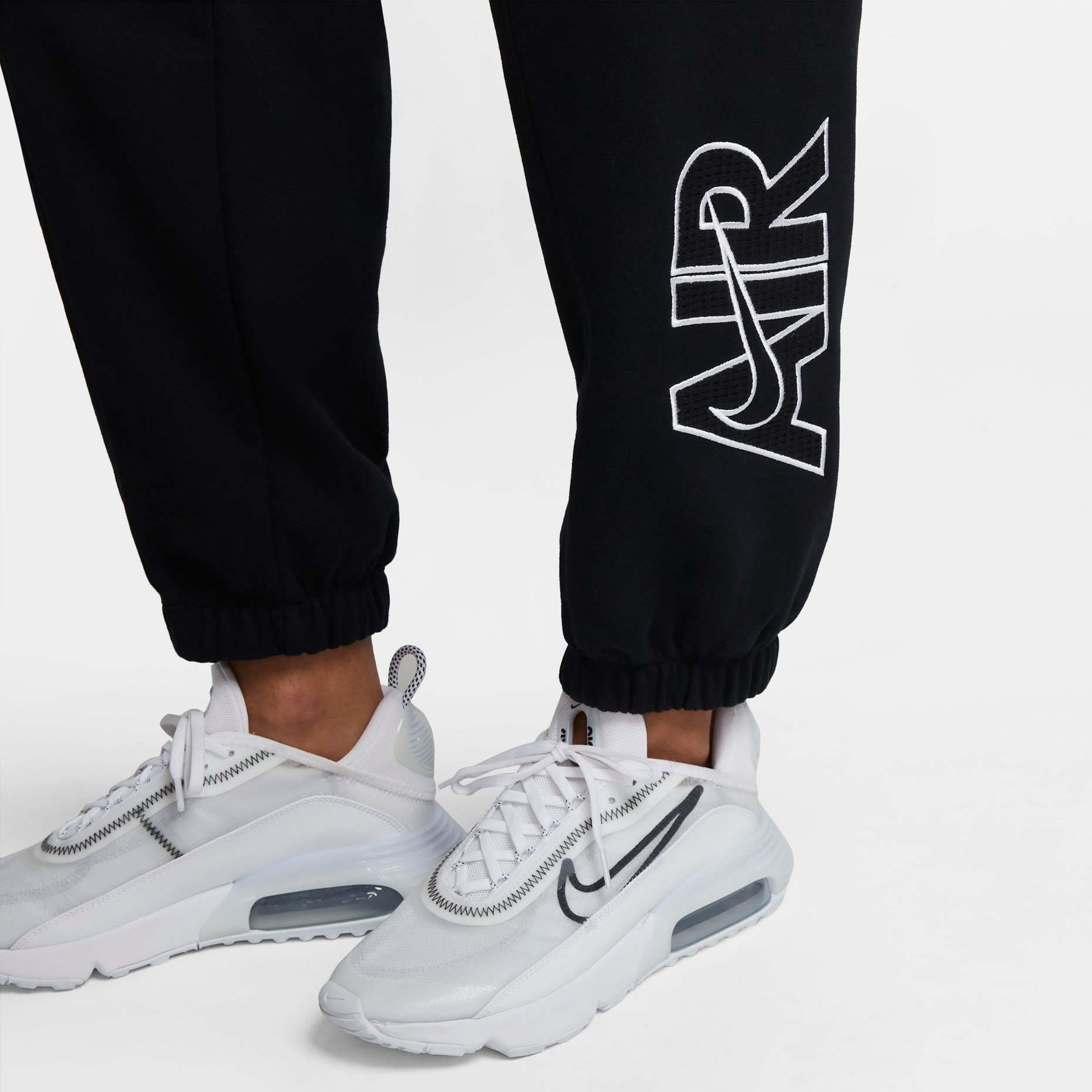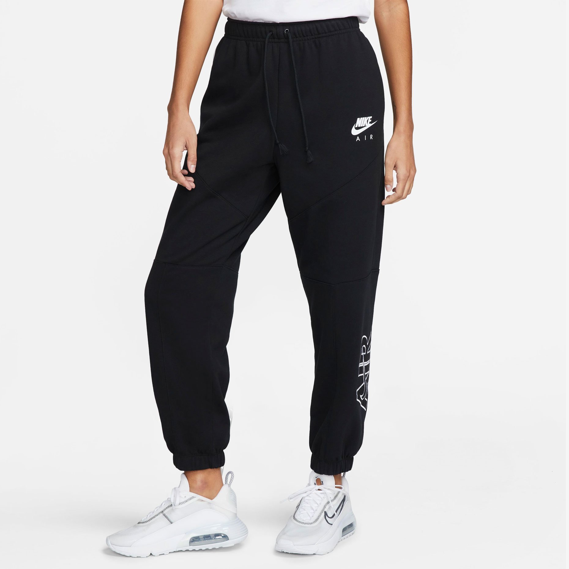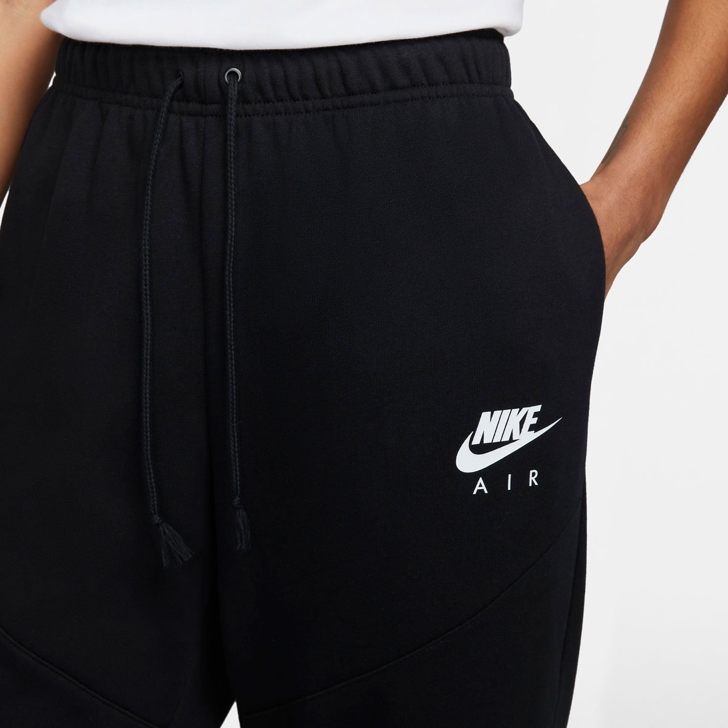 - Аппликация Nike Air на нижней части левой штанины украшена вышитым контуром, а мягкий логотип Nike Air напечатан под левым бедром, что придает брюкам дополнительный шарм и олицетворяет их принадлежность к бренду Nike Air.