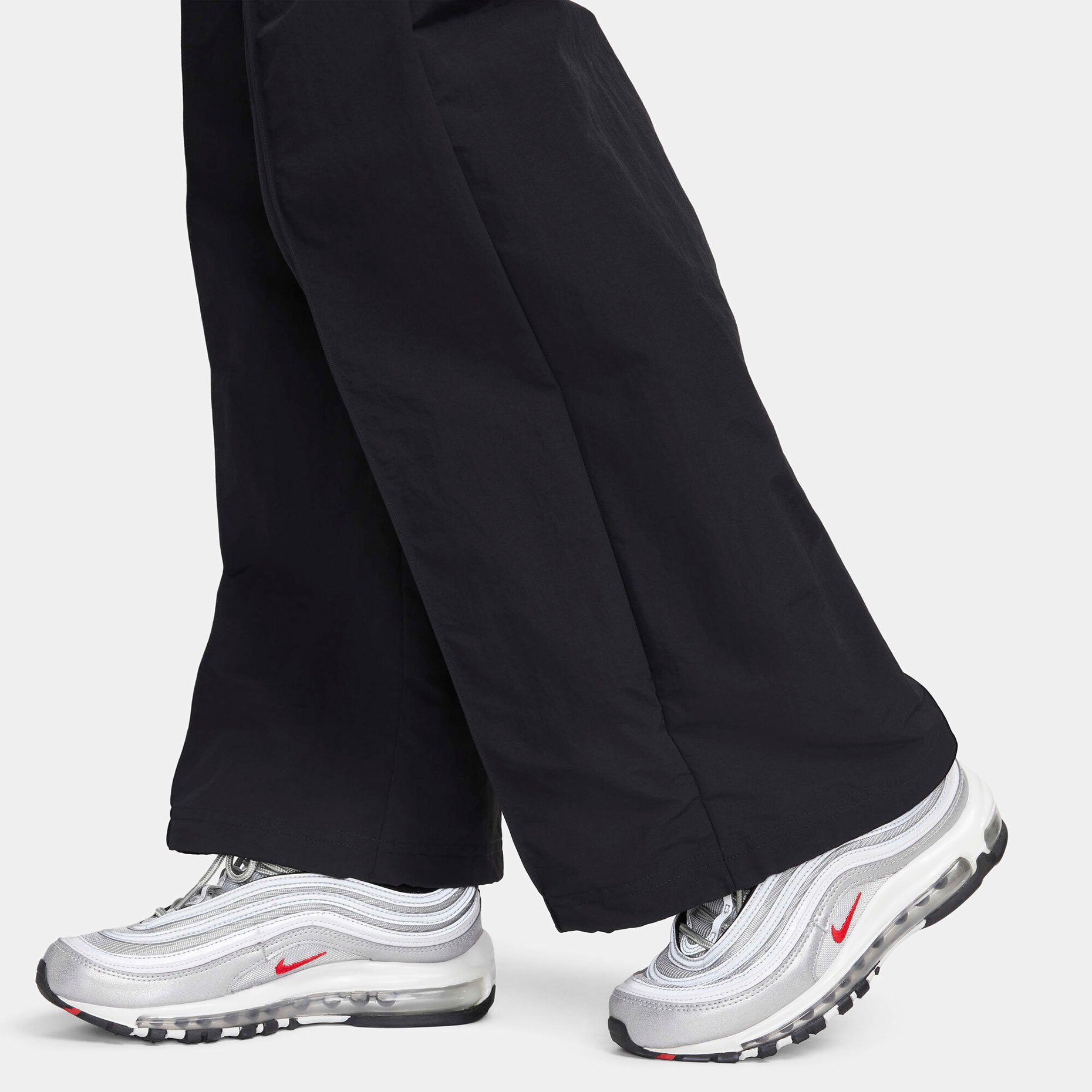 Брюки Nike Sportswear Everything Wovens Mid-Rise Open-Hem Pants - это воплощение современного спортивного стиля с акцентом на практичность и комфорт. Уникальная текстура с эффектом мятой отделки придает модели особый шарм, а продуманный дизайн делает их идеальным выбором для повседневного использования.