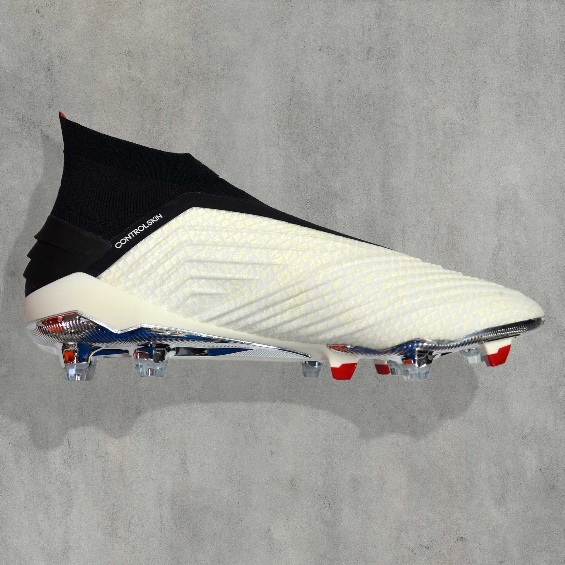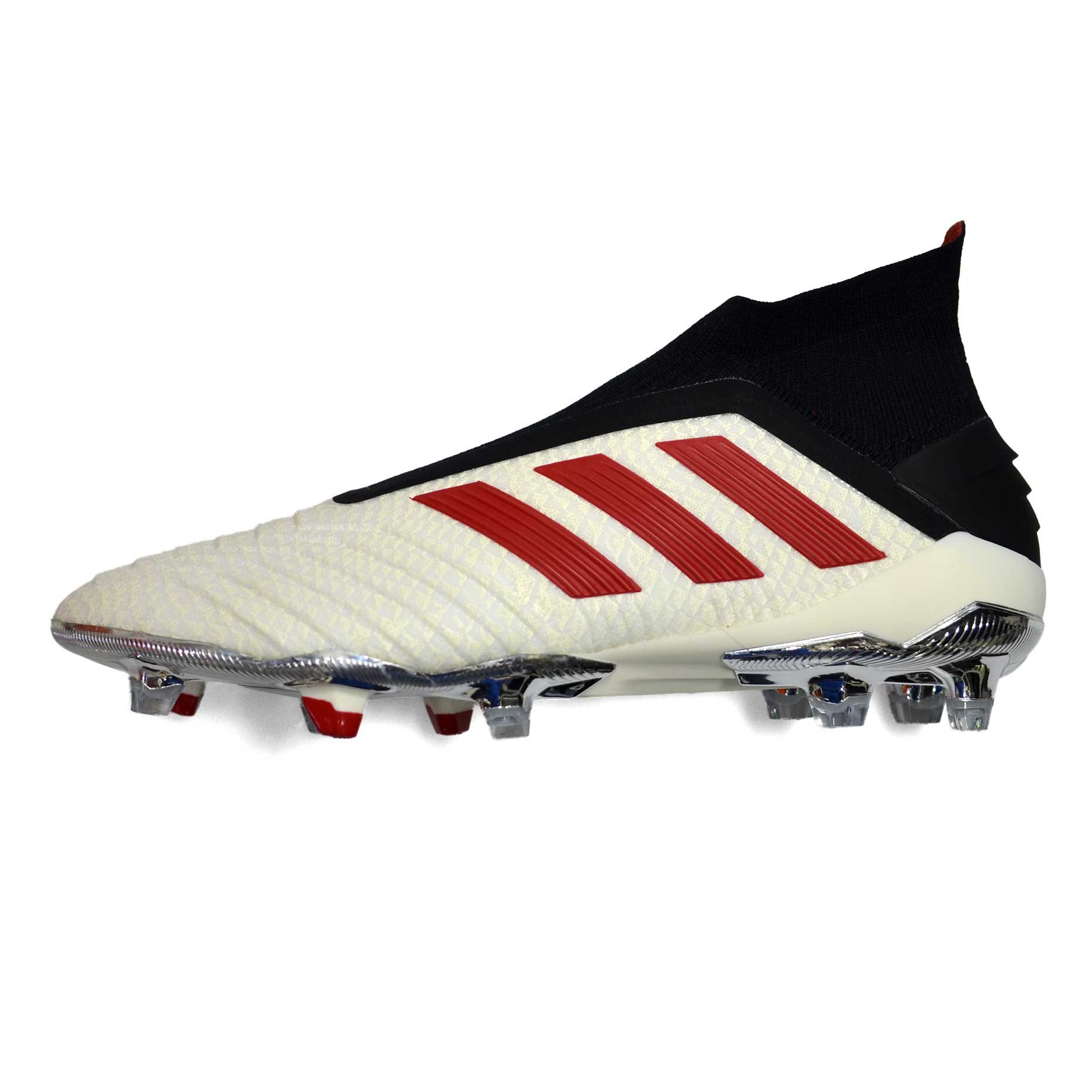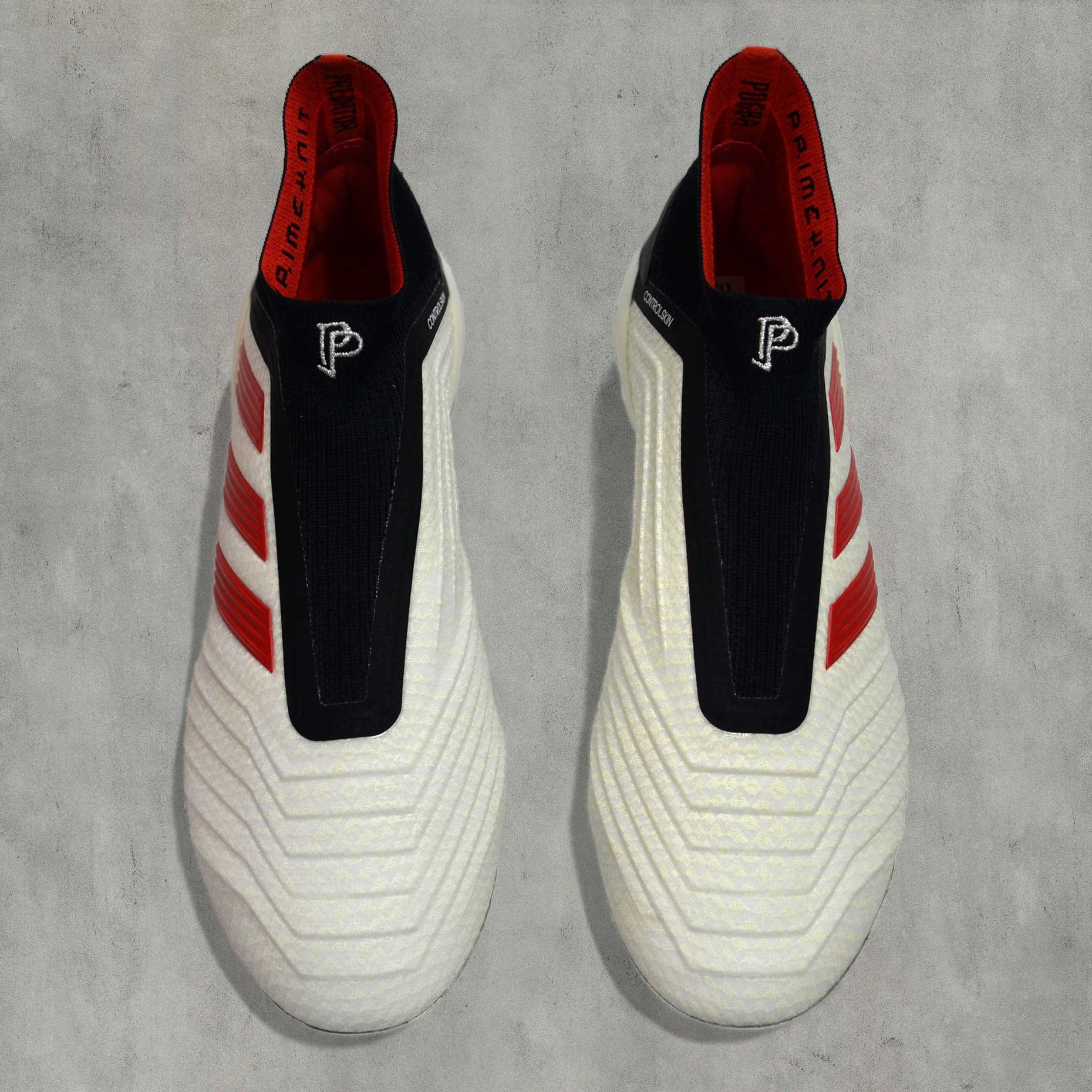 Футбольные бутсы Adidas PREDATOR 19+ FG PP FTWWHT/RED/CBLACK F37094 – модель из лимитированной коллекции была создана в коллаборации с чемпионом мира – Полем Погба. Конструкция верха без шнурков выполнена из трикотажного материала, дополненного принтом под кожу.