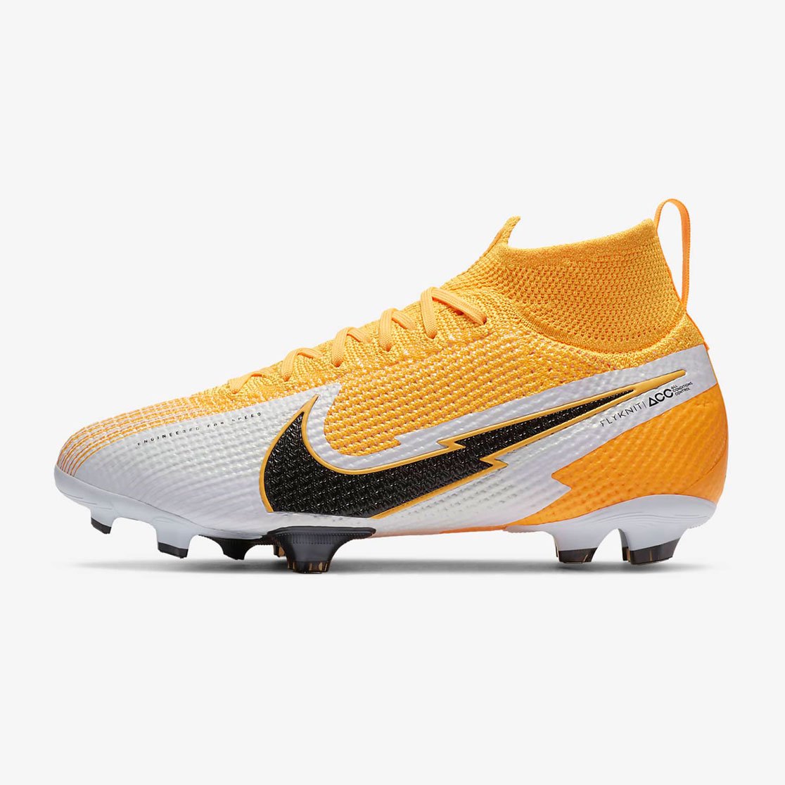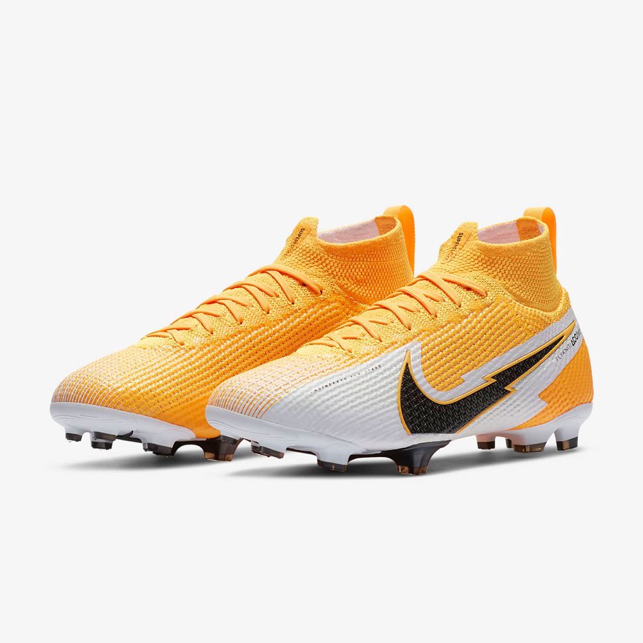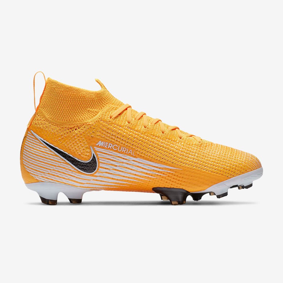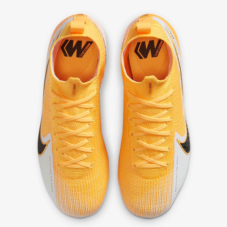 Бутсы Nike Jr. Mercurial Superfly 7 Elite FG с верхом из инновационного материала Flyknit, как в версии 6, дополнены зоной Nike Aerotrak в передней части для улучшенного сцепления.