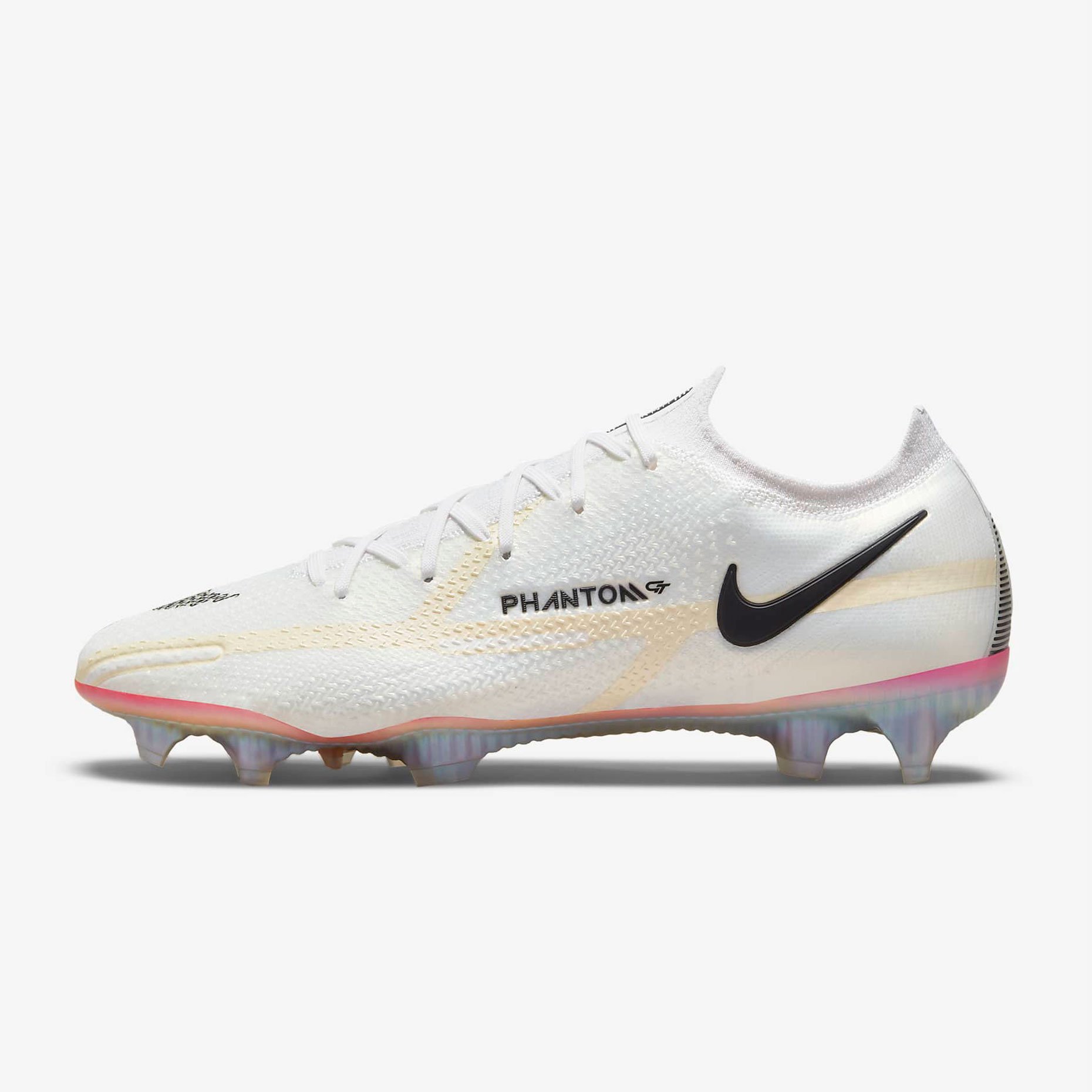 Обновленный дизайн и рельефный рисунок подошвы бутс Nike Phantom GT2 Elite FG из линейки Phantom GT помогают оптимально подкручивать мяч для точной траектории полета. Боковая шнуровка увеличивает зону удара для искусного ведения, передачи и ударов по мячу.