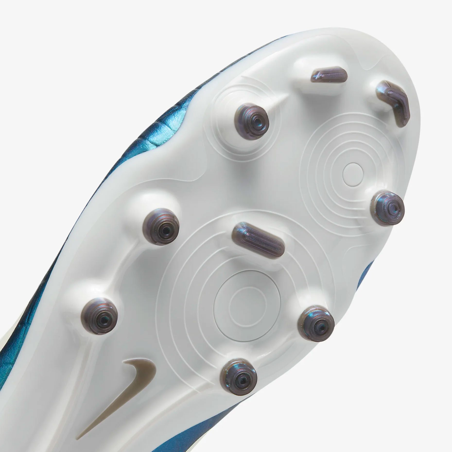 Легкая подошва модели снабжена шипами конической и плоской формы, которые обеспечивают превосходное сцепление и тягу на различных покрытиях. Такая комбинация шипов позволяет игроку маневрировать и сохранять устойчивость на поле, делая бутсы универсальными для различных условий.