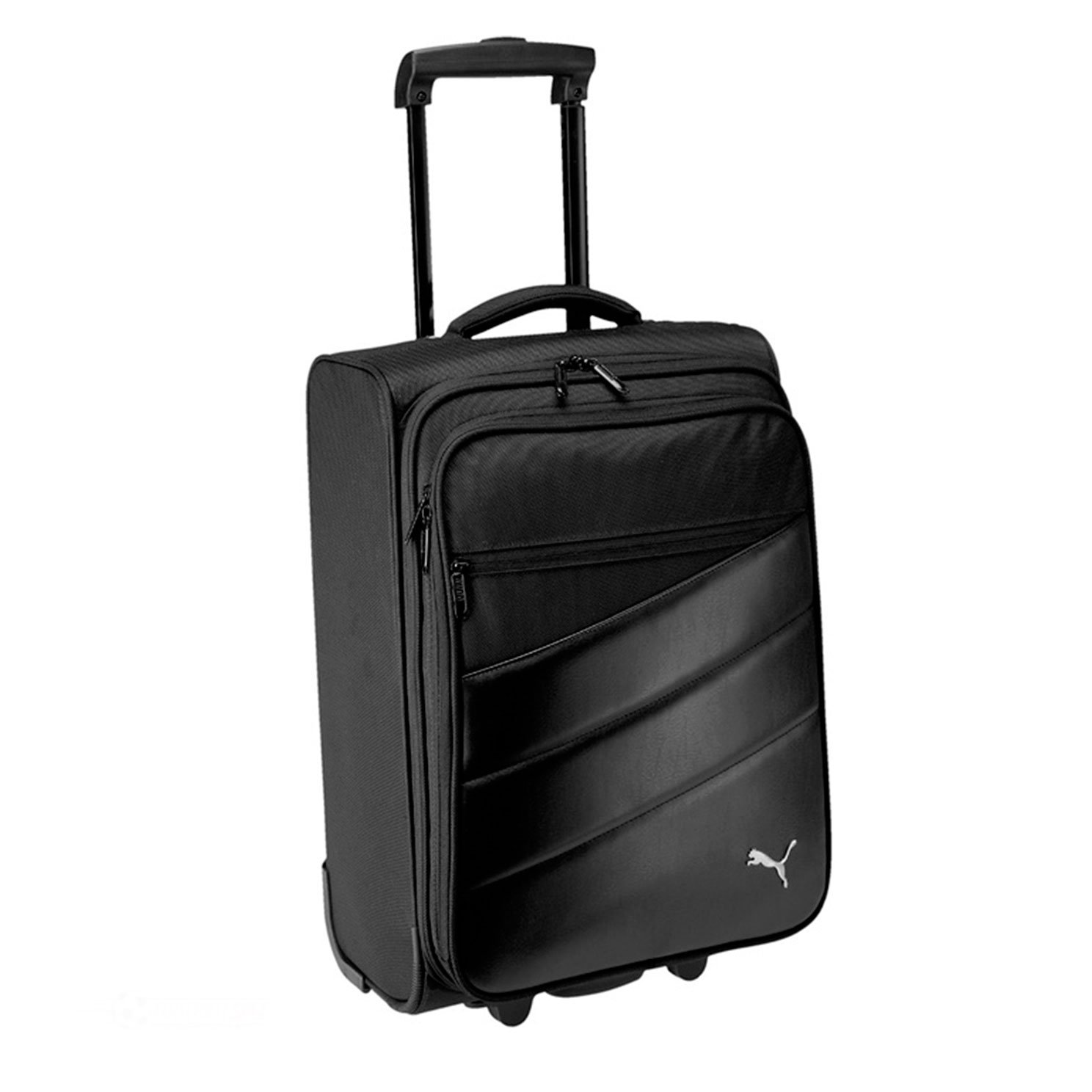 Чемодан на колёсах Puma Team Trolley Bag выполнен из прочной нейлоновой ткани, дополнен вставкой из искусcтвенной кожи и маленьким логотипом Puma. Имеет одно большое отделение и внешний карман на молнии.