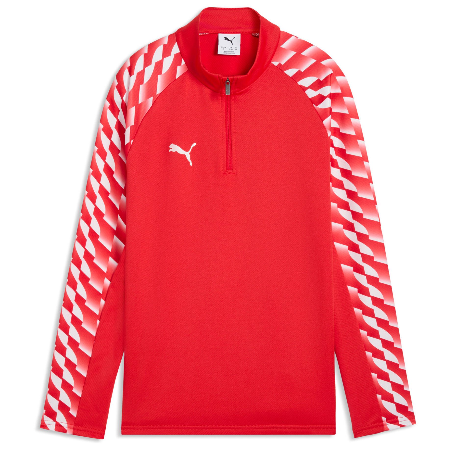 Молния на четверть длины позволяет легко надевать джемпер и регулировать вентиляцию во время тренировок. Воротник-стойка обеспечивает дополнительный комфорт и защиту от прохлады, а рукава реглан с фирменным принтом в стиле PUMA Formstripe создают динамичный спортивный дизайн и не ограничивают движений. Стандартный крой обеспечивает удобную посадку, позволяя юным спортсменам полностью сосредоточиться на игре или тренировке.