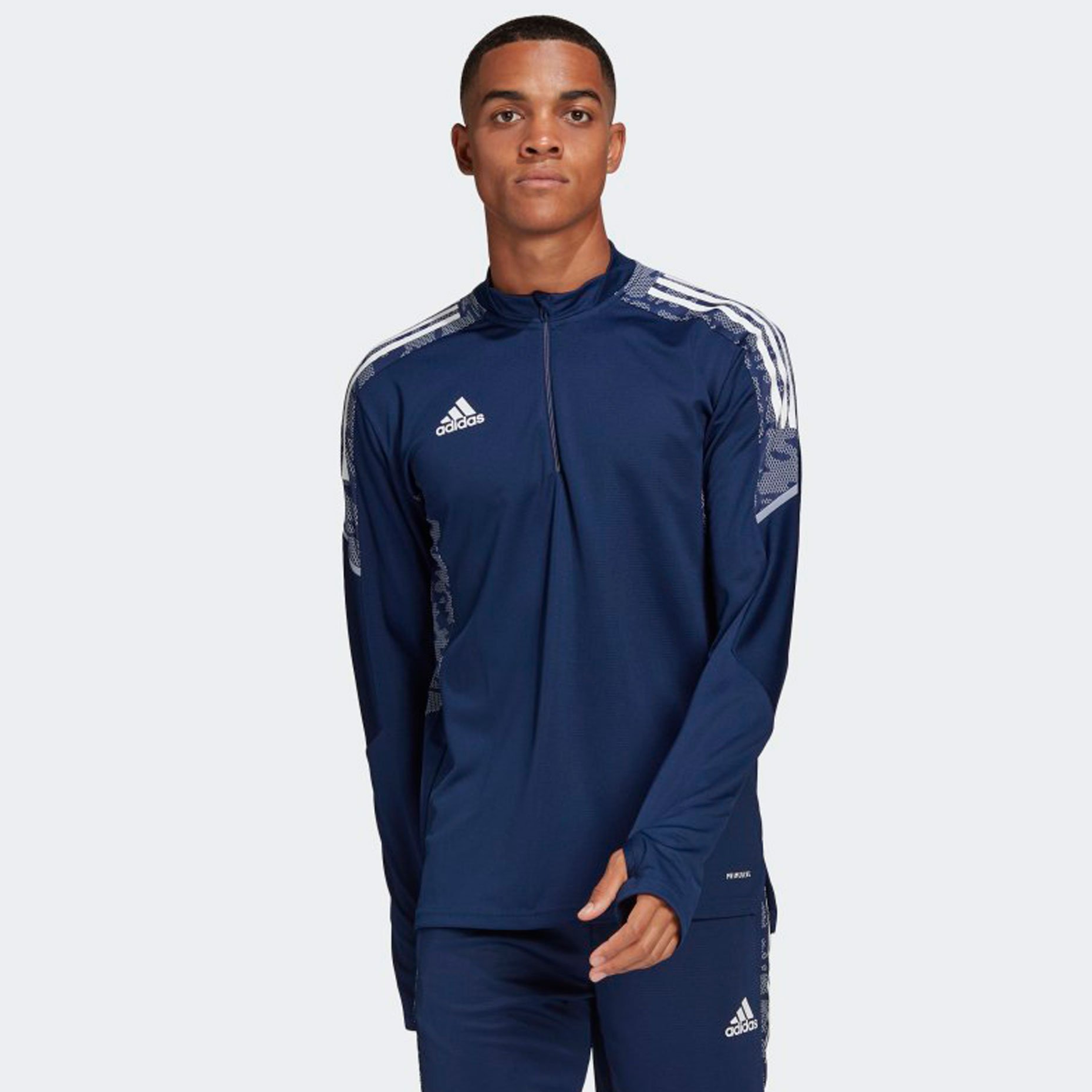 Для того, чтобы выиграть матч, одних тренировок мало, но каждая тренировка приближает тебя к заветноqй цели. Футбольный джемпер adidas Condivo 21 создан с использованием материала Primeblue из волокна Parley Ocean Plastic в рамках программы по борьбе с пластиковыми отходами. Ткань AEROREADY сохраняет ощущение сухости, а манжеты с прорезями для больших пальцев обеспечивают дополнительный комфорт. Камуфляжный принт на плечах и по бокам вдохновлен красотой воды в движении.