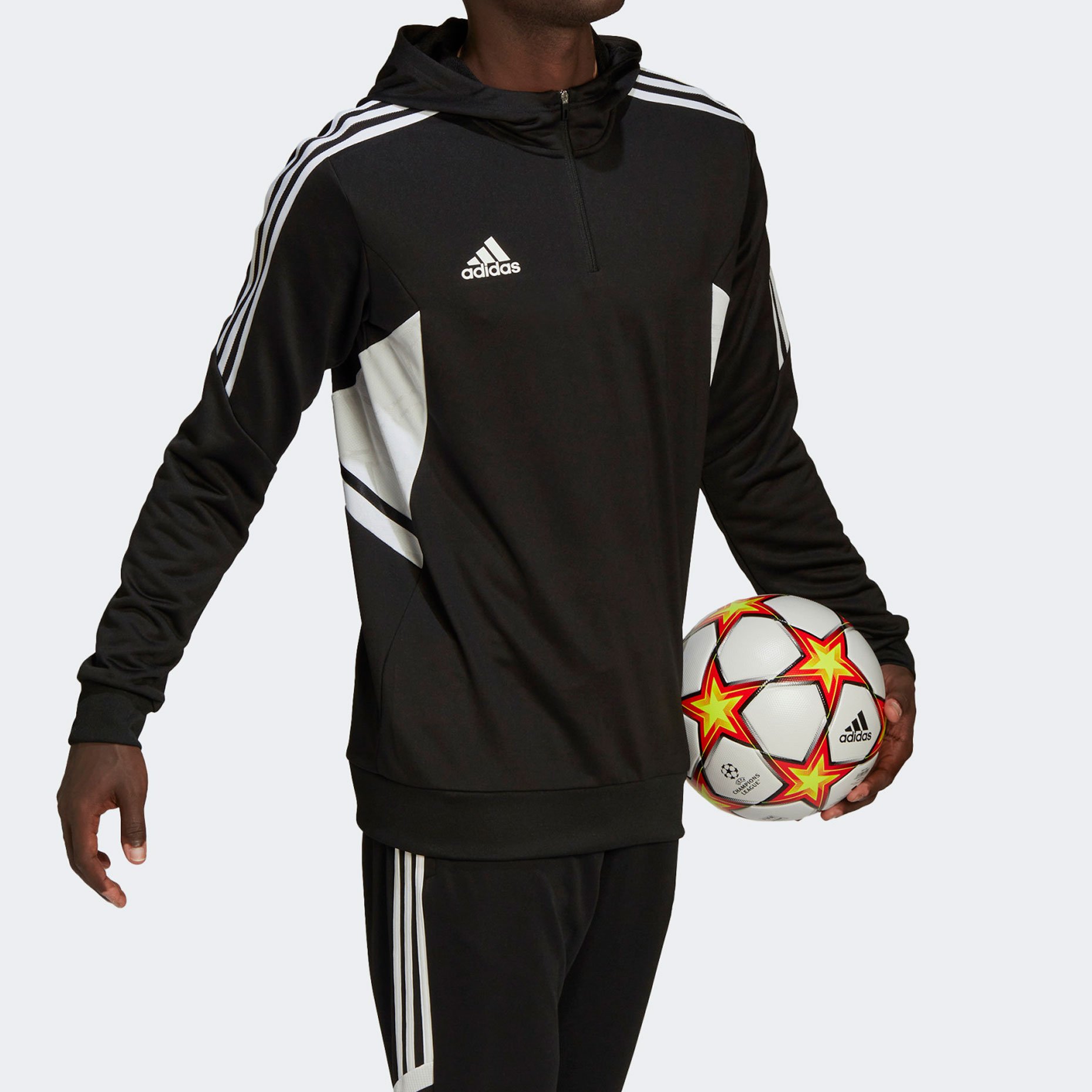 Джемпер тренировочный adidas Condivo 22 имеет идеальную посадку благодаря облегающему крою. Боковые вставки являются частью уникального дизайна. Впитывающая влагу ткань с технологией Aeroready сохраняет ощущение комфорта в течение всего дня. За счет укороченной молнии худи удобно снимать.