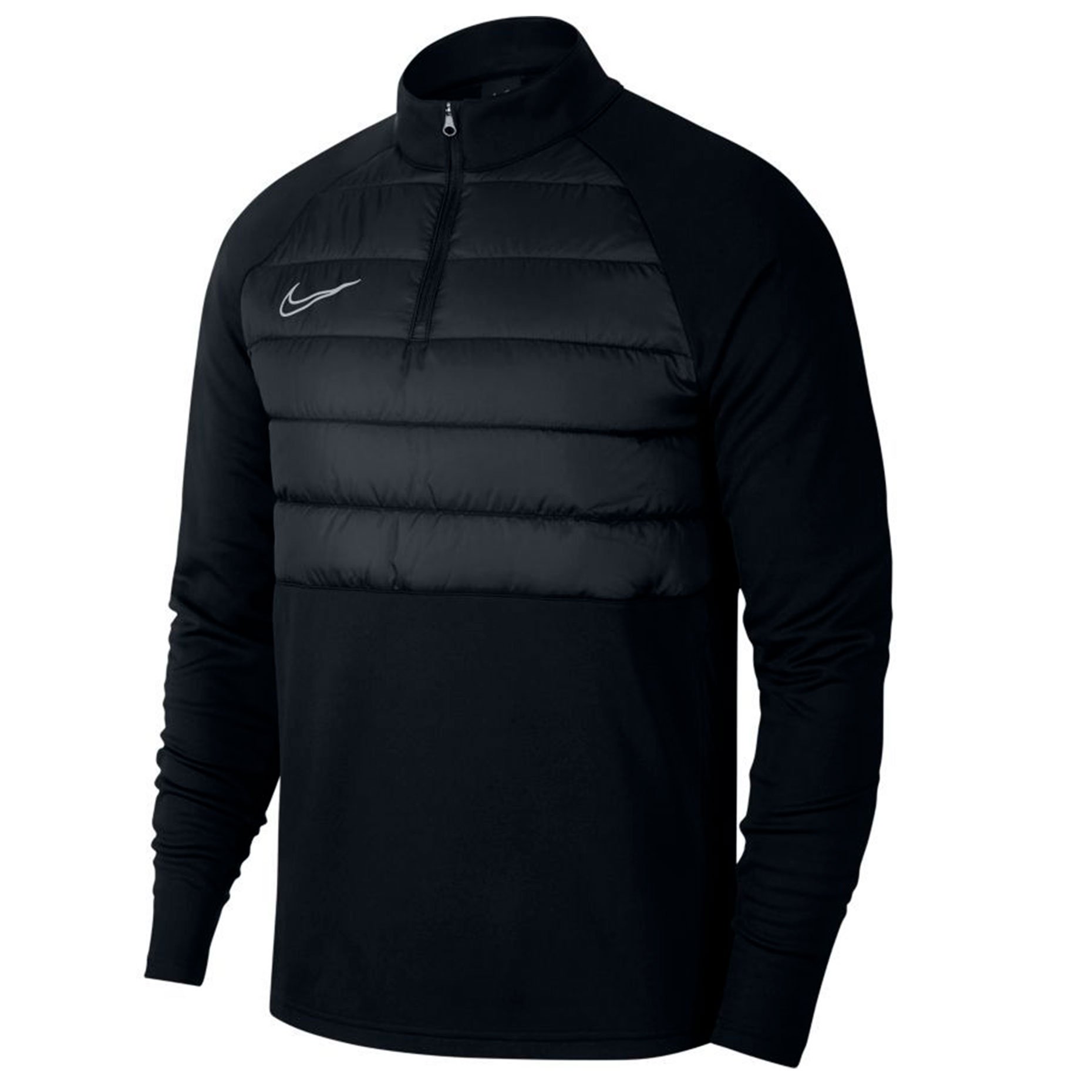 Тренировочный джемпер Nike Dri-FIT Academy Winter Warrior дополнен теплоизолирующей вставкой на груди, защищающей от влаги и сохраняющей тепло. Мягкая ткань с технологией Nike Dri-FIT отводит от кожи влагу. Манжеты со скрытыми отверстиями для больших пальцев фиксируют рукава и закрывают руки.