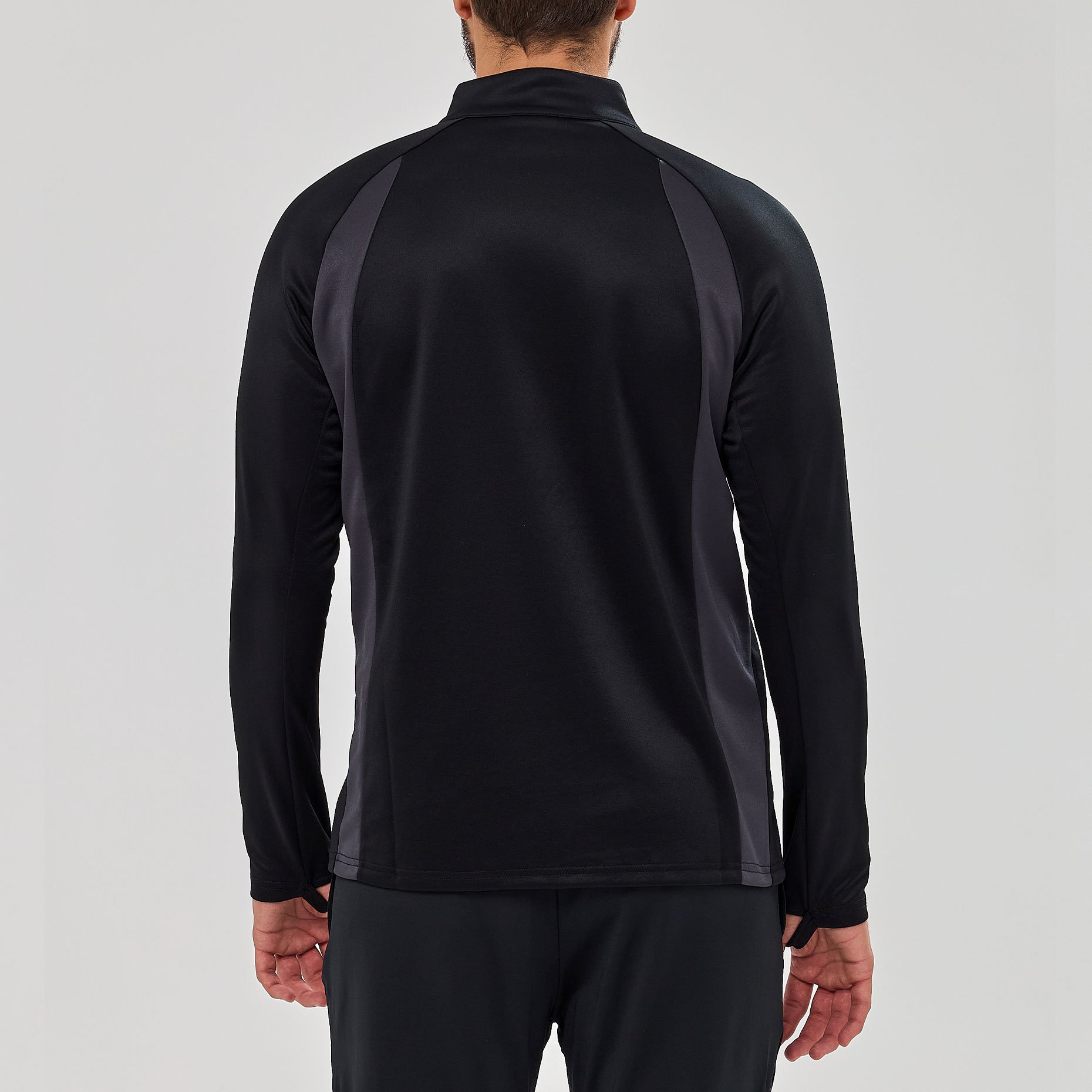 • Отверстия для больших пальцев на рукавах фиксируют рукава во время тренировок.