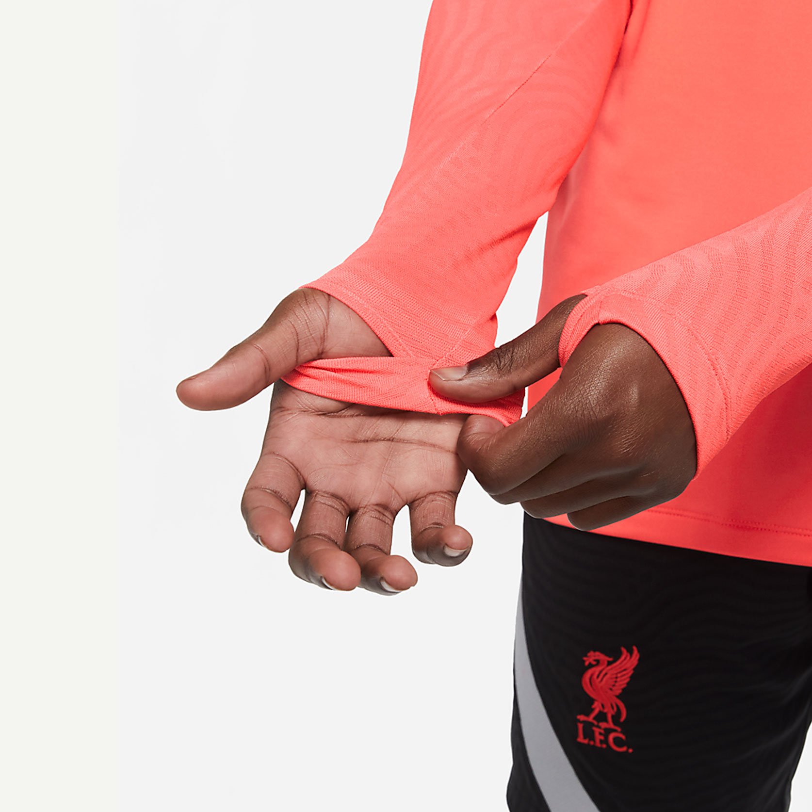 Джемпер тренировочный Liverpool FC Strike прилегающего кроя со скрытыми отверстиями для больших пальцев позволяет полностью сконцентрироваться на тренировке. Влагоотводящая ткань позволяет ощущать прохладу в самые жаркие моменты игры.