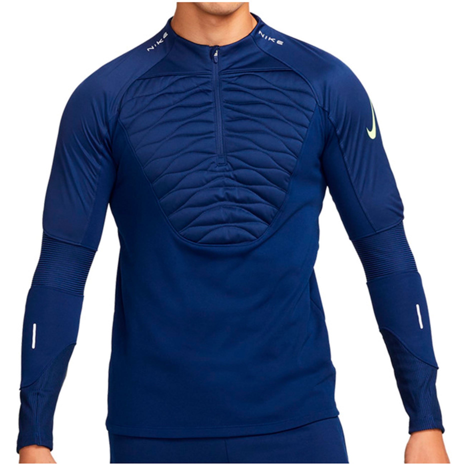 Джемпер тренировочный Nike Therma-FIT Winter Warrior Strike помогает тренироваться в холодную погоду сохраняя тепло. Вставка на груди с синтетическим наполнителем защищает легкие от переохлаждения.
