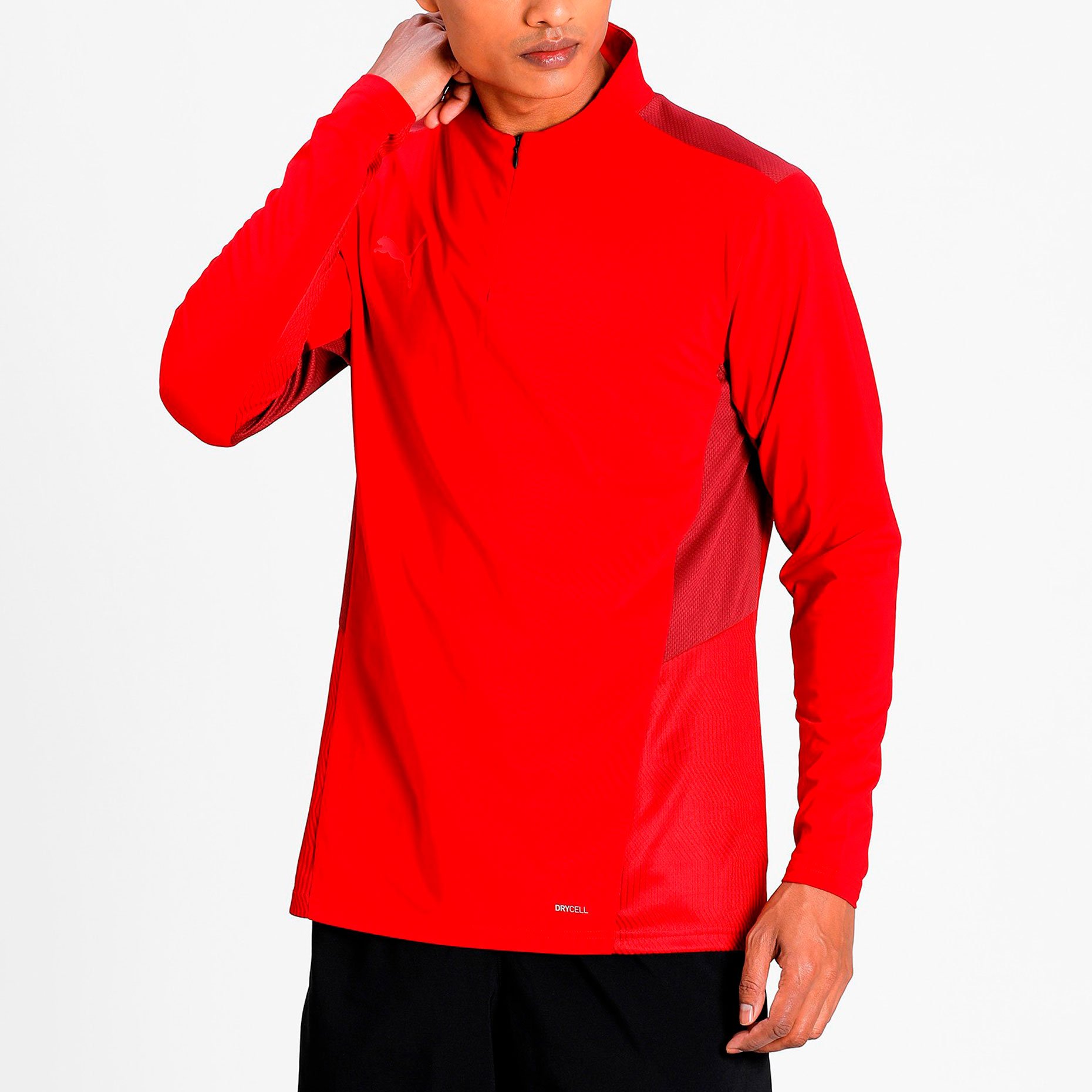 Джемпер Puma teamCUP с молнией на 1/4 выполнен из влагоотводящей ткани с применением технологии dryCELL. Имеет флисовый подклад для сохранения тепла в прохладную погоду.