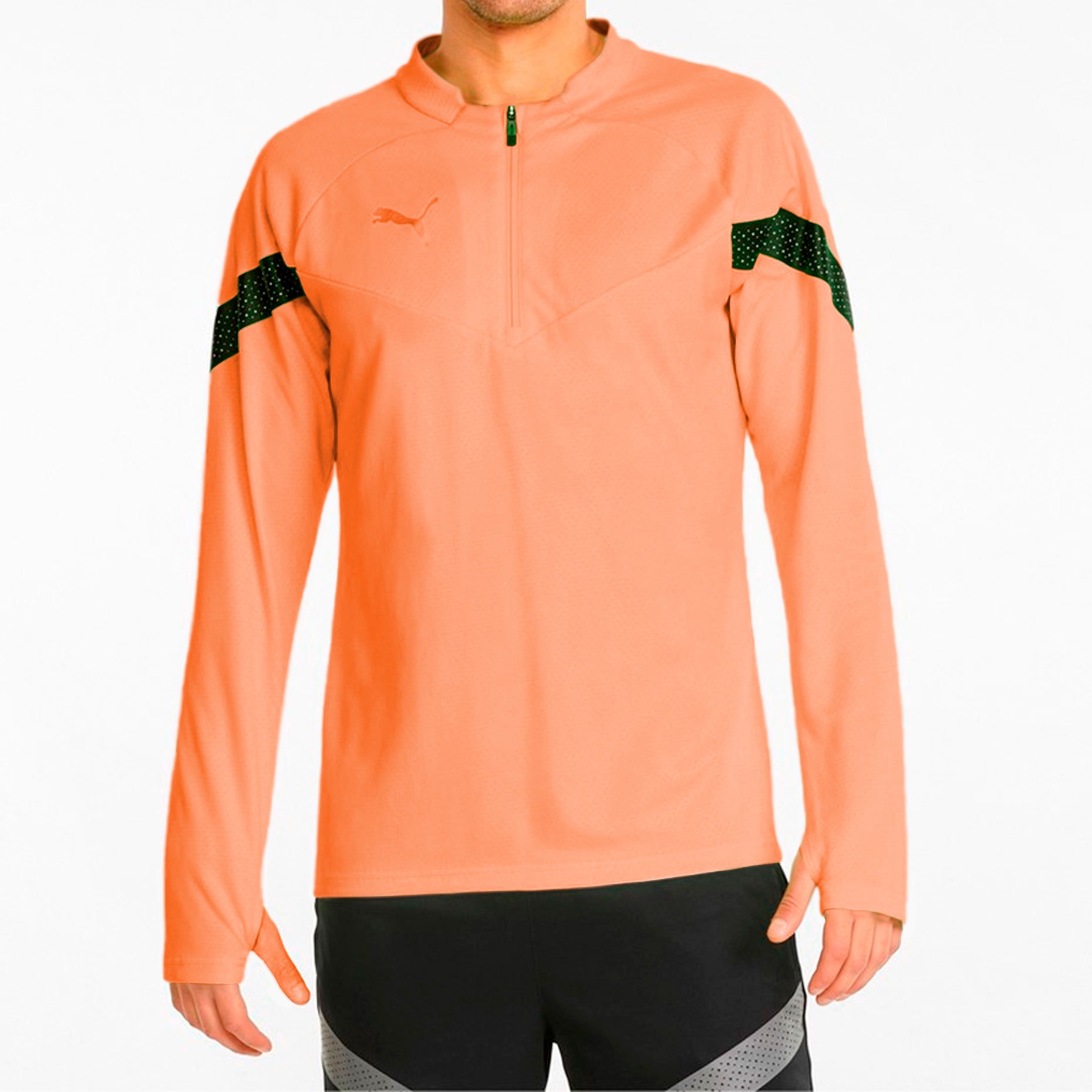 Джемпер Puma TeamFinal выполнен из высокотехнологичной ткани dryCELL, которая отводит влагу и обеспечивает ощущение сухости и комфорта. Эластичная ткань плотно прилегает к телу и дает необходимую свободу при движении. Контрастные вставки на плечах создают неповторимый дизайн. Модель имеет прилегающий крой.