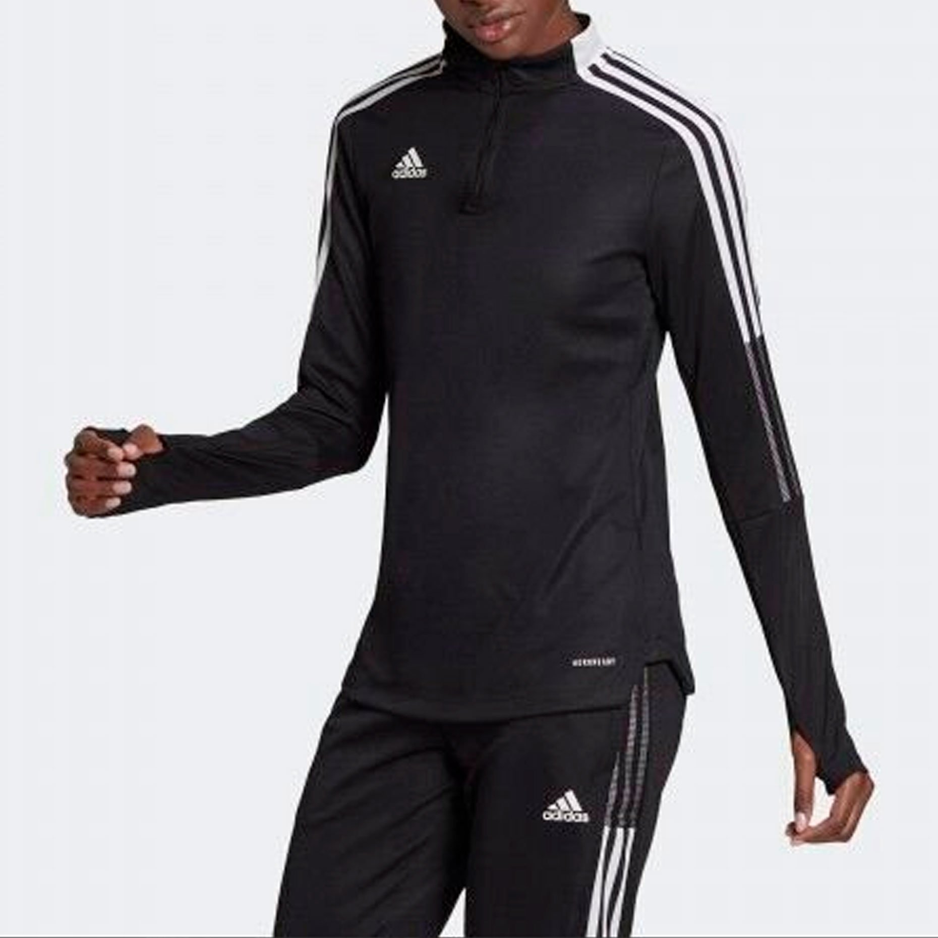 Джемпер тренировочный adidas Tiro 21 Training Top - это функциональная и стильная одежда для тренировок. Он изготовлен из влагоотводящей ткани, которая помогает отводить пот и поддерживает ощущение сухости и комфорта. Модель оснащена молнией 1/4, что позволяет регулировать вентиляцию в зависимости от нужд и погодных условий. Также джемпер имеет петли для больших пальцев, которые позволяют удерживать рукава на месте и обеспечивают дополнительную защиту от холода.