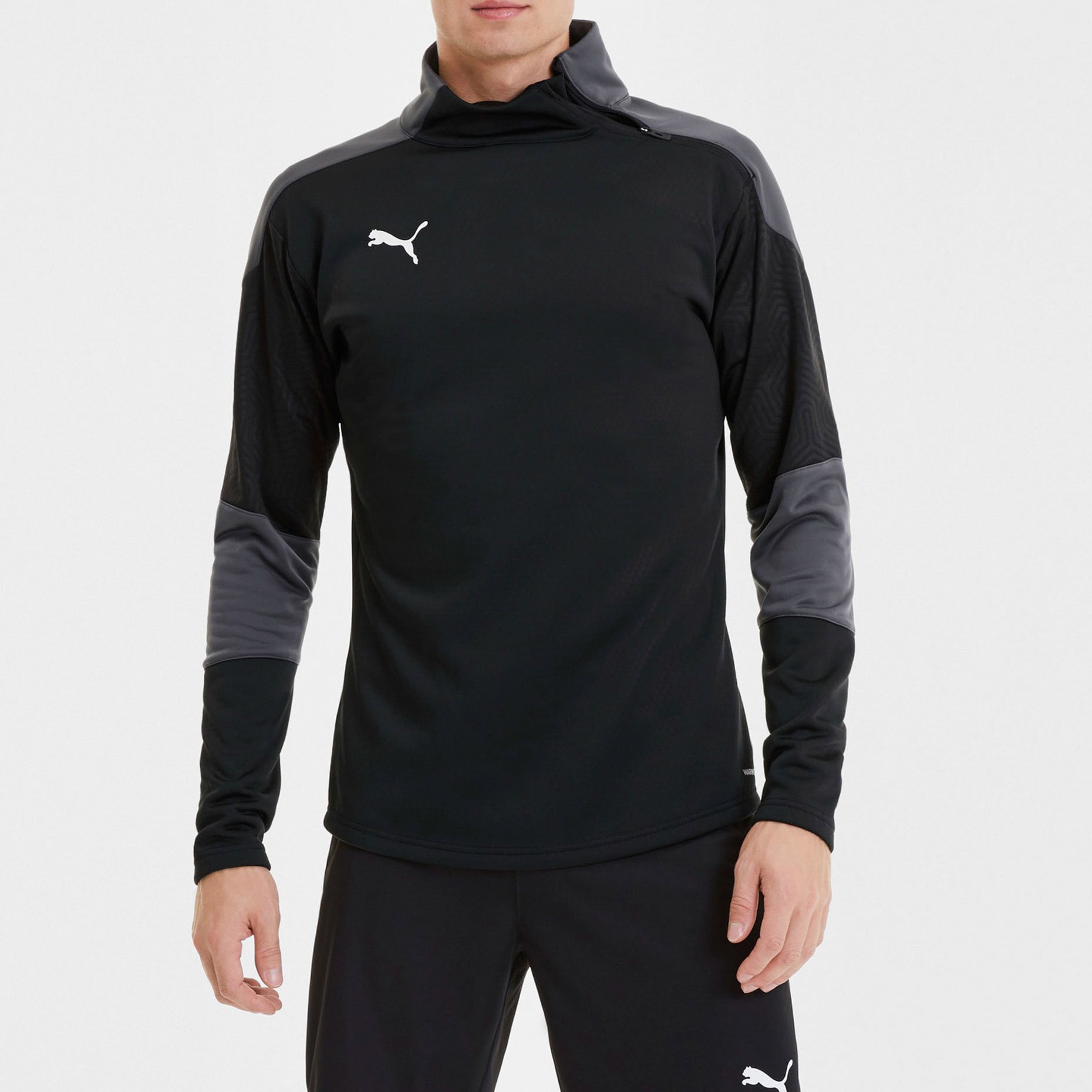 Джемпер Puma TeamFinal 21 выполнен из высокотехнологичной ткани dryCELL, которая отводит влагу и обеспечивает ощущение сухости и комфорта. Эластичная ткань плотно прилегает к телу и дает необходимую свободу при движении. Контрастные вставки на плечах и рукавах создают неповторимый дизайн. Модель имеет удлиненную спинку, прилегающий крой, вставки из сетки на рукавах для лучшей вентиляции и посадки. Модель имеет флисовый подклад для сохранения тепла в прохладную погоду.