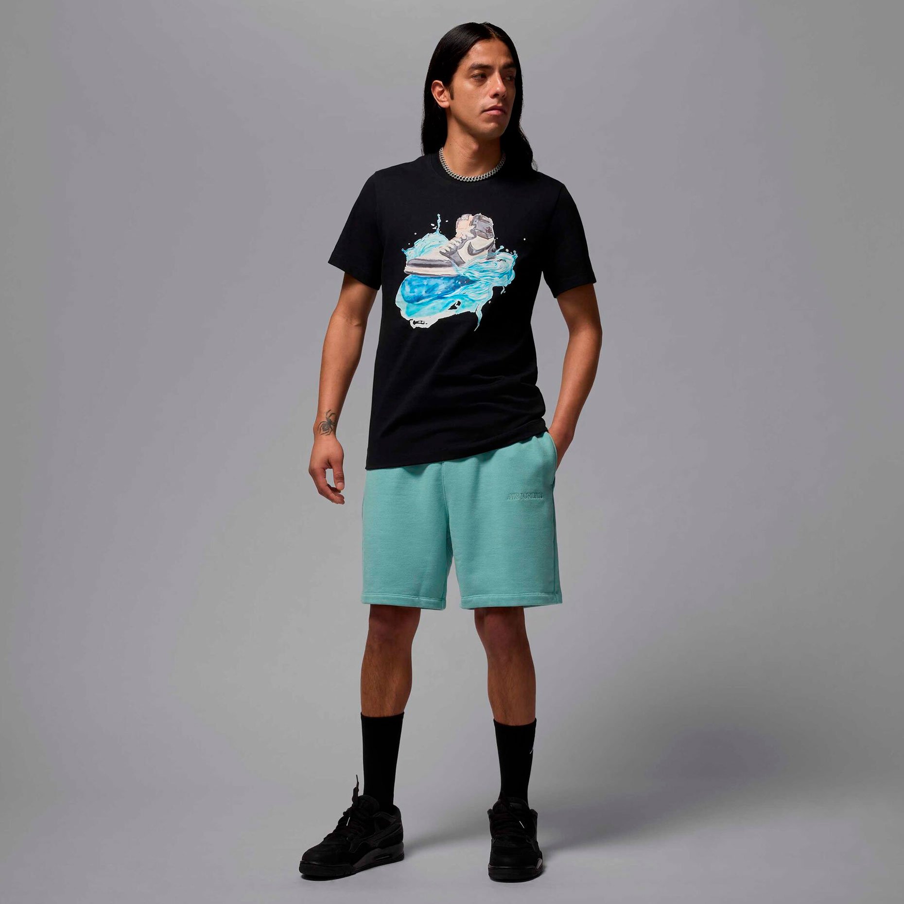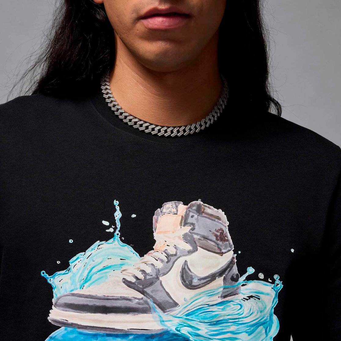 Футболка Jordan Flight Essentials AJ1 Tee — это настоящее произведение искусства в мире спортивной одежды. Модель представляет собой гармоничное сочетание классического дизайна и художественного видения, где культовая модель Air Jordan 1 изящно изображена в технике акварели, словно скользящая по волнам.