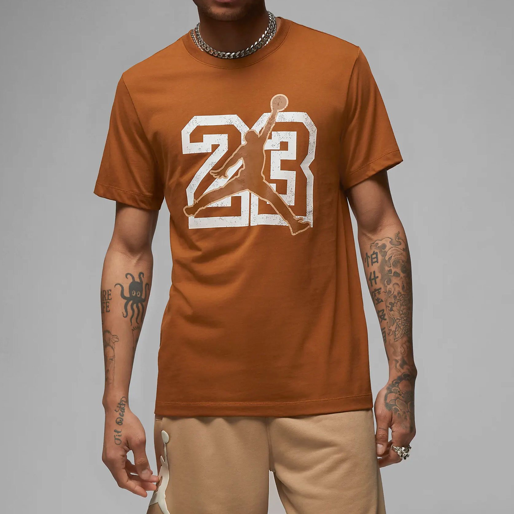 Футболка Jordan Flight Essentials Tee - это стильная и удобная футболка, созданная брендом Jordan. Она изготовлена из мягкого хлопка, что обеспечивает комфортное ощущение на коже во время ношения. Футболка имеет классический круглый вырез и короткие рукава, что делает ее универсальной и подходящей для повседневной носки. Одним из особых преимуществ этой футболки является легендарная графика, которая делает ее уникальной и стильной. Графика включает в себя логотипы Jordan и игровой номер великого Майкла Джордана, которые создают яркий и неотразимый вид.