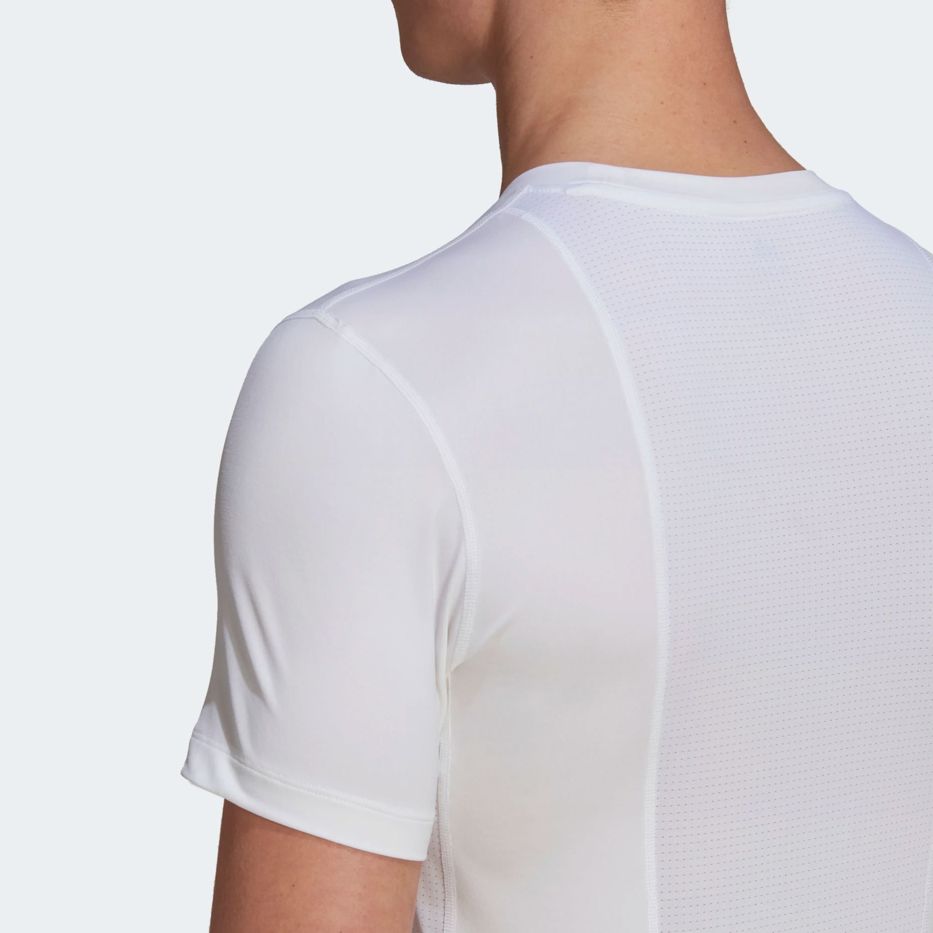 Надевай эту футболку adidas на тренировки или под форму в день матча. Легкий компрессионный материал Techfit плотно облегает мышцы. Он хорошо тянется, обеспечивает эффективную вентиляцию и дарит комфорт во время активной игры. Впитывающая влагу ткань с технологией AEROREADY сохраняет ощущение сухости.