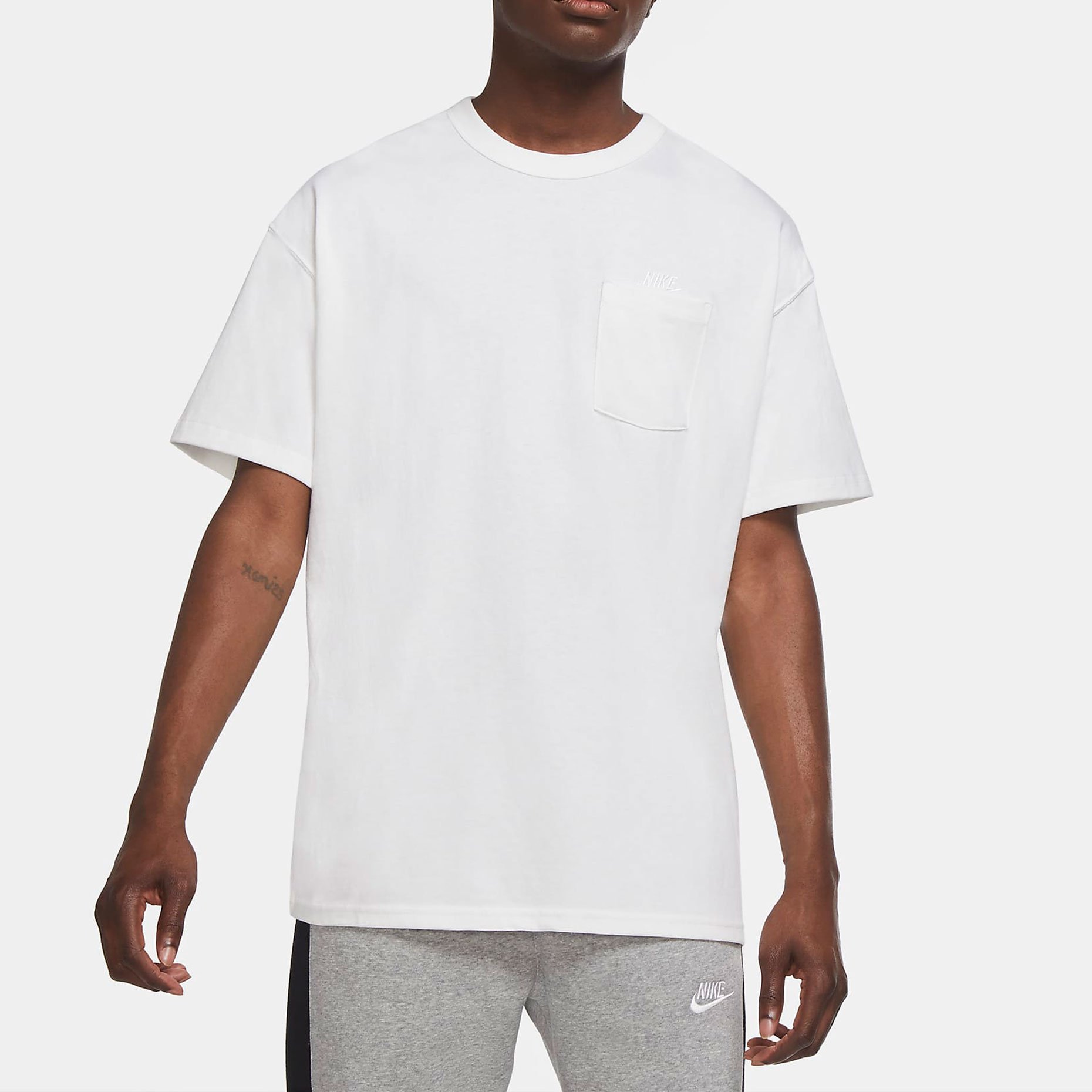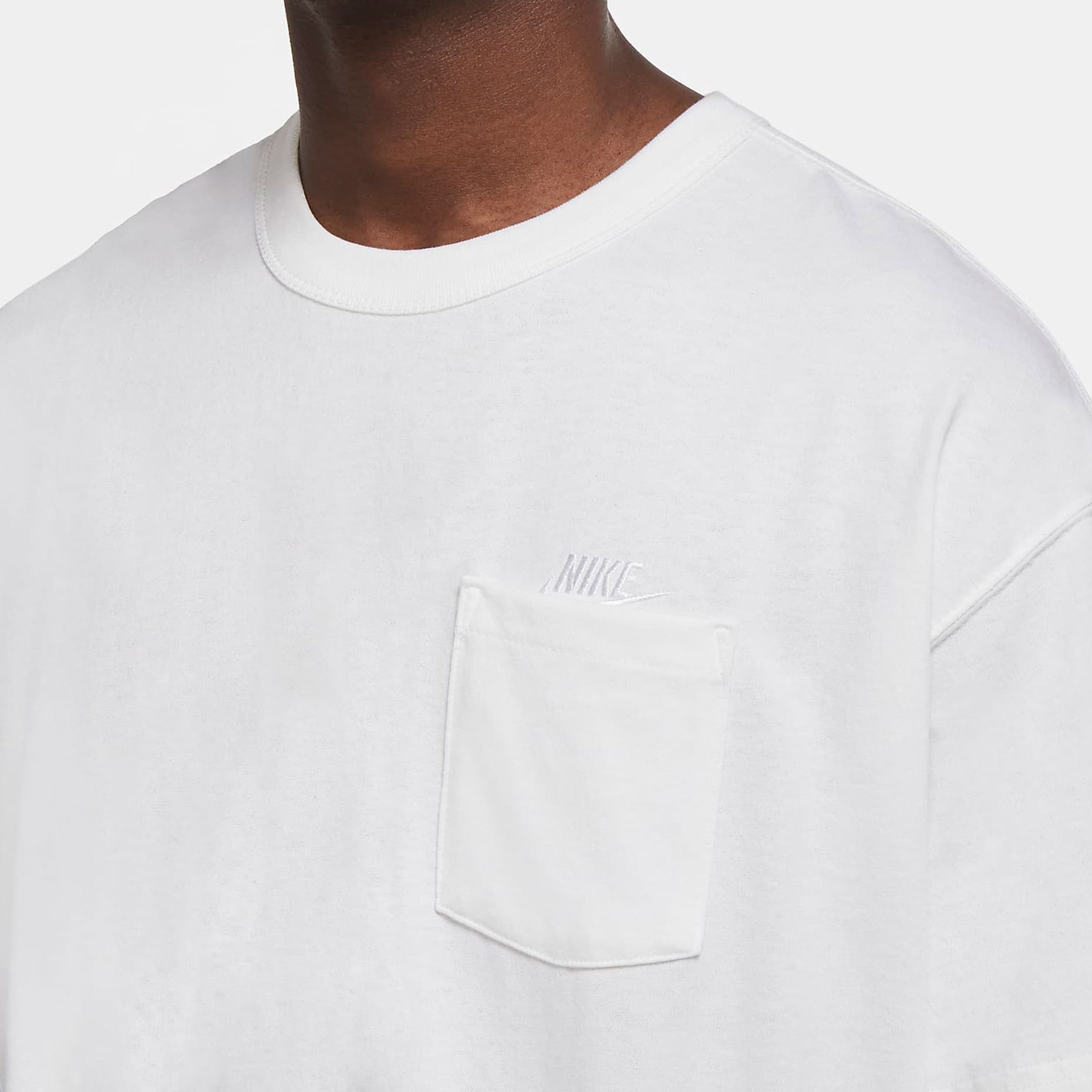 Футболка Nike Sportswear Premium Essential из плотного хлопкового трикотажа джерси выполнена с фирменным свободным кроем Max 90. Стильные детали в виде вышитой графики и кармана на груди создают элегантный образ.
