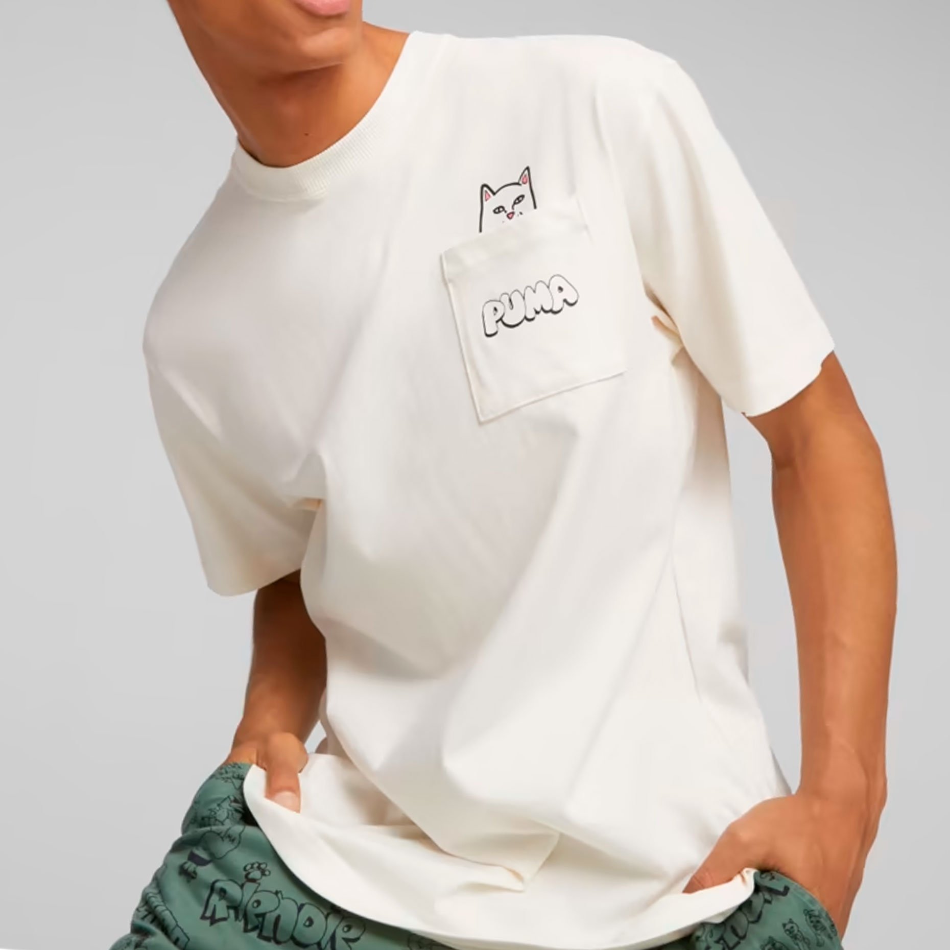 Футболка Puma x RIPNDIP Pocket Tee - это стильная и уникальная модель, созданная в результате сотрудничества PUMA и RIPNDIP.
