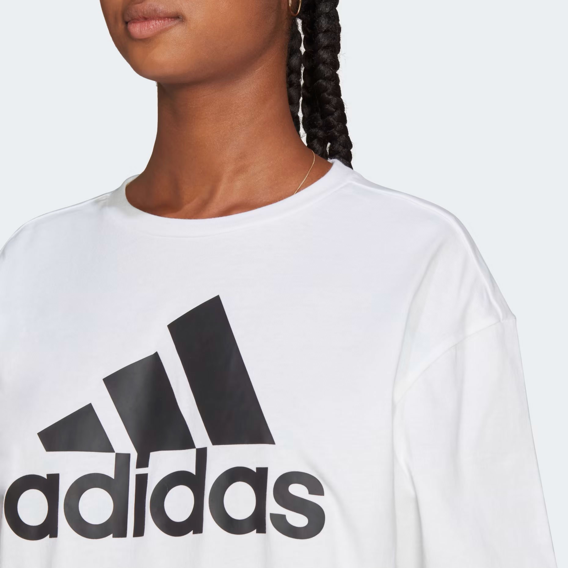 Футболка выполнена в свободном крое Boyfriend, который идеально подходит для создания расслабленного и стильного образа. На передней части футболки расположен крупный логотип adidas, добавляющий яркий акцент и подчеркивающий принадлежность к бренду. Материал футболки состоит из 100% хлопка, что делает её мягкой и дышащей.