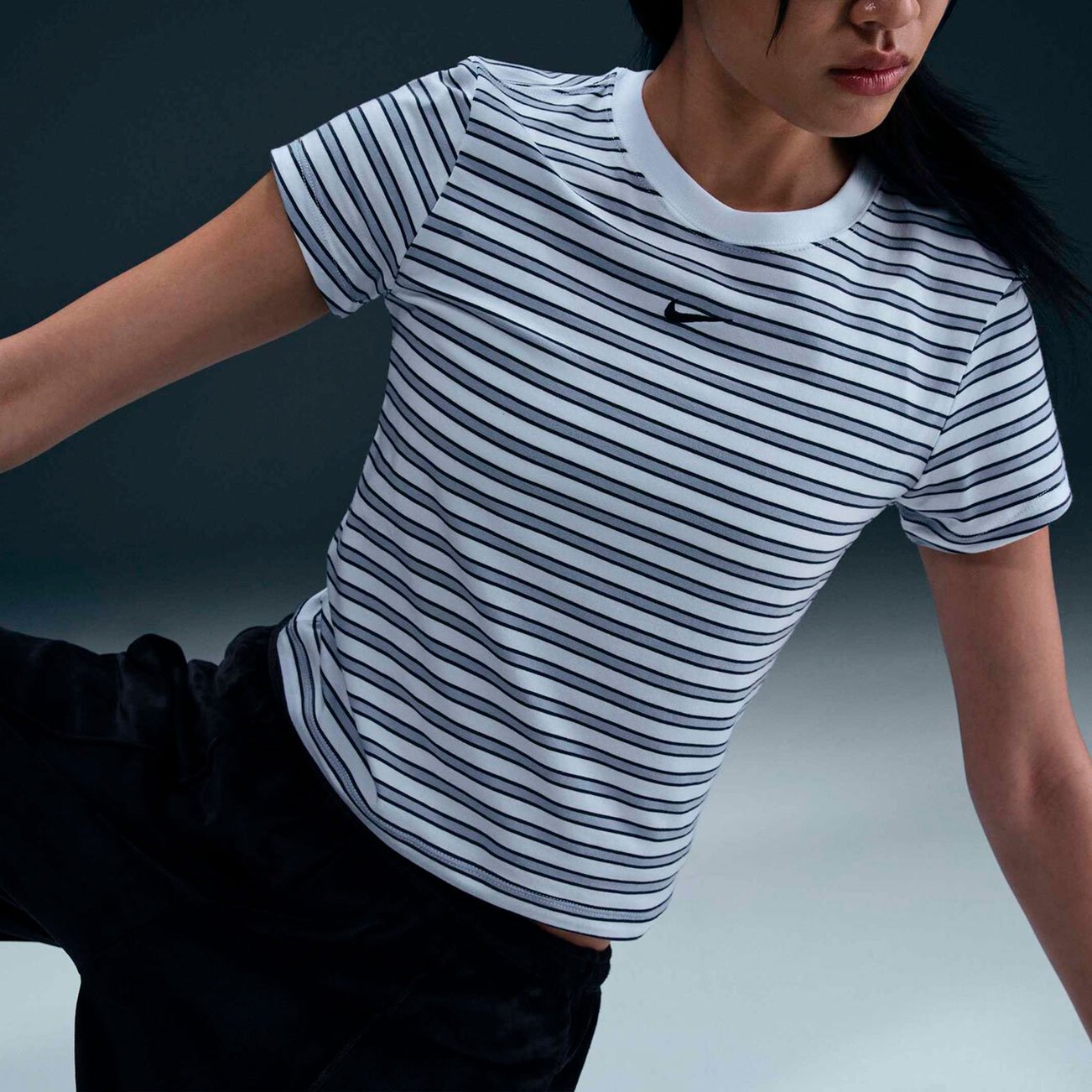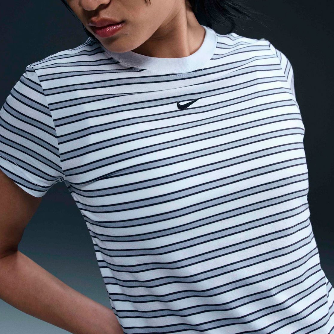 Футболка Nike Sportswear Chill Knit Slim Striped Tee представляет собой современную интерпретацию классической полосатой модели. Укороченный приталенный силуэт придает изделию стильный вид, а высококачественный трикотаж делает еe невероятно комфортной для ежедневной носки.