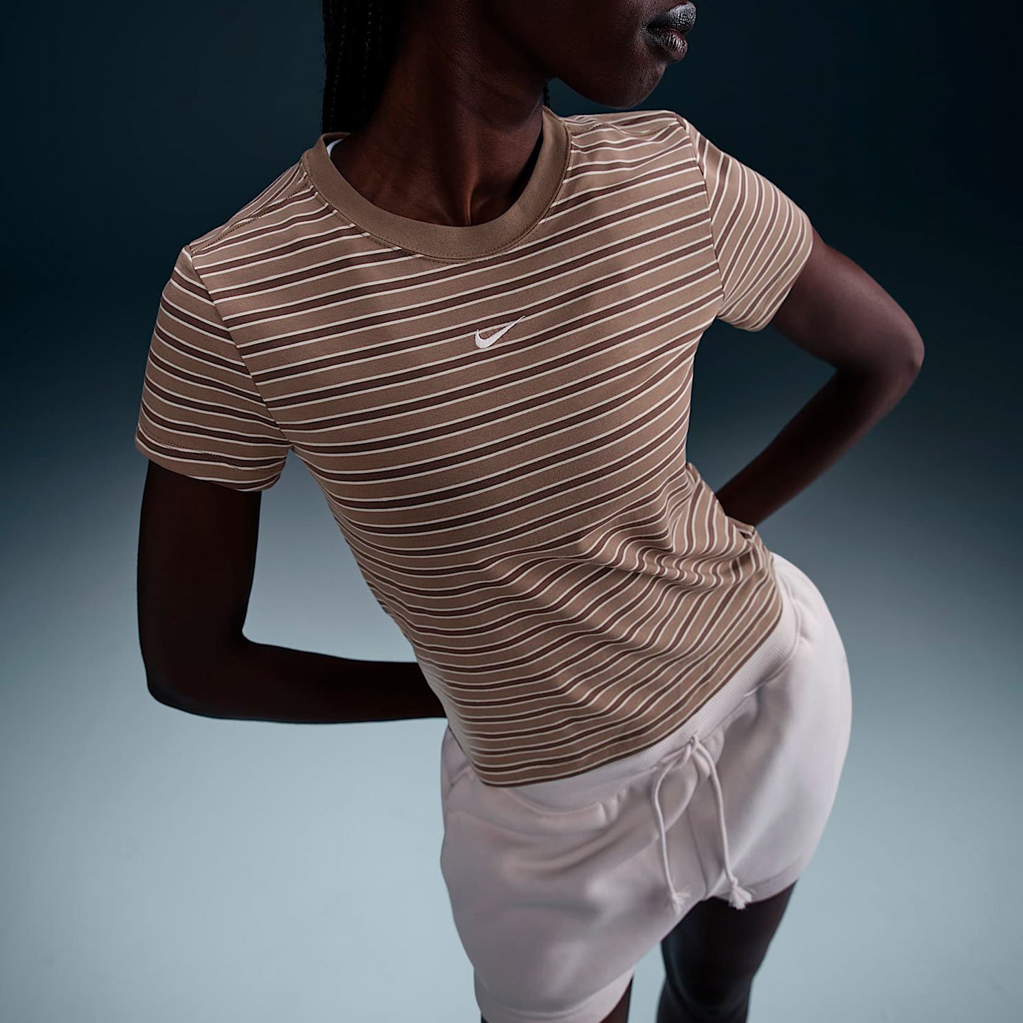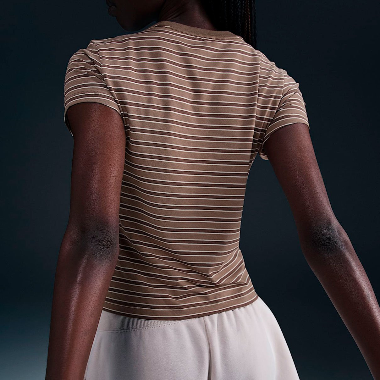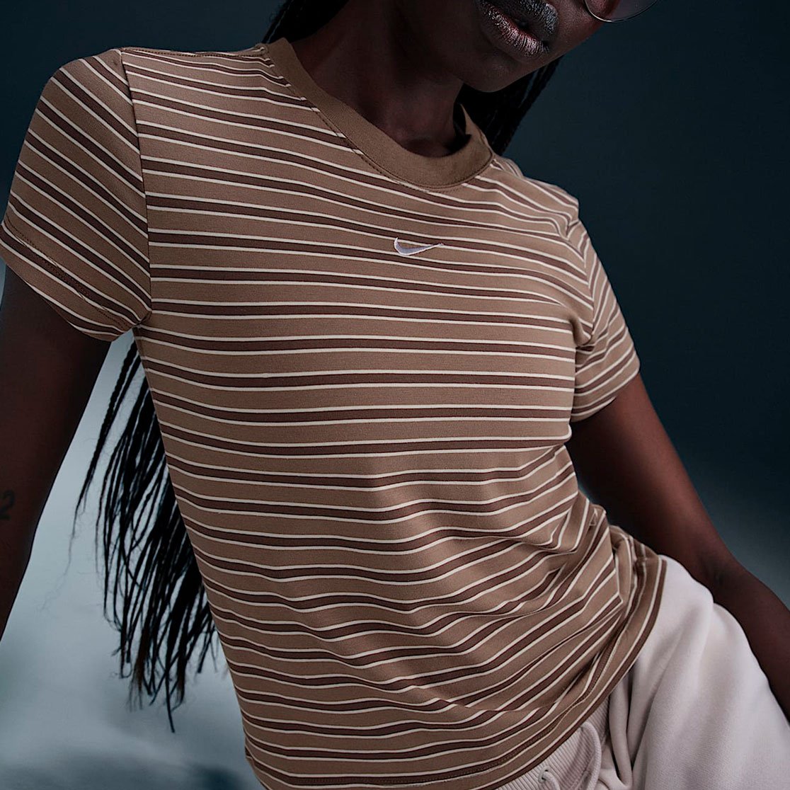 Футболка Nike Sportswear Chill Knit Slim Striped Tee представляет собой современную интерпретацию классической полосатой модели. Укороченный приталенный силуэт придает изделию стильный вид, а высококачественный трикотаж делает еe невероятно комфортной для ежедневной носки.