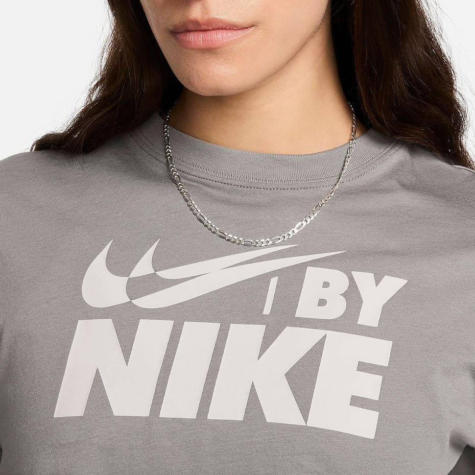 Футболка имеет свободный крой, что придаёт ей расслабленный и стильный вид. На груди расположена узнаваемая эмблема Swoosh, которая подчёркивает принадлежность к бренду Nike. Укороченный дизайн подчёркивает фигуру, не сковывая движений, что делает её отличным выбором для тренировок или активного отдыха.