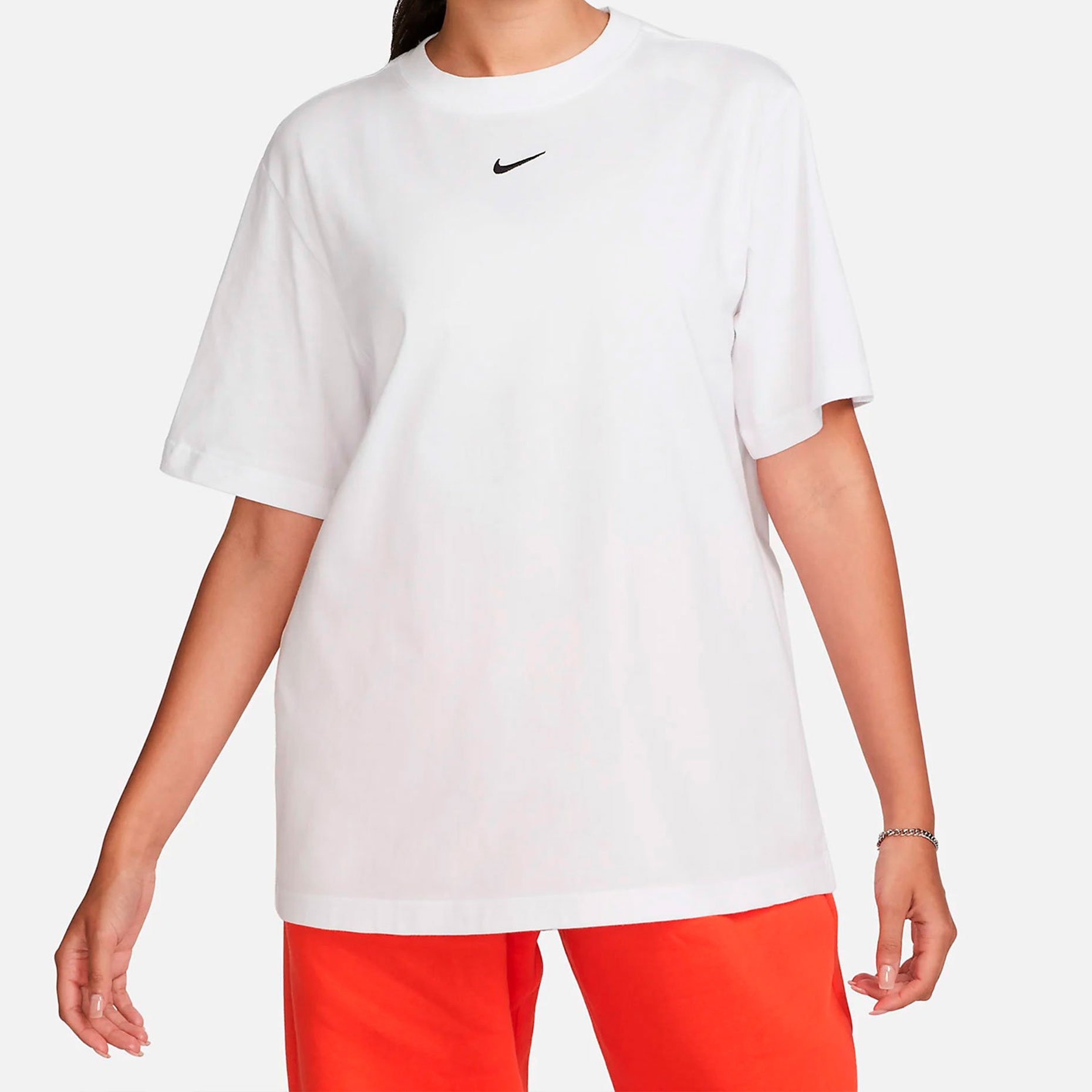 Футболка Nike Sportswear Essential Tee однозначно займет место самого любимого и универсального элемента гардероба! Спущенные плечи, свободный Oversize-крой делают эту модель удобной и стильной одновременно. Минималистичный дизайн в виде знаменитого «свуша» Nike позволяет стилизовать эту футболку под любой случай.