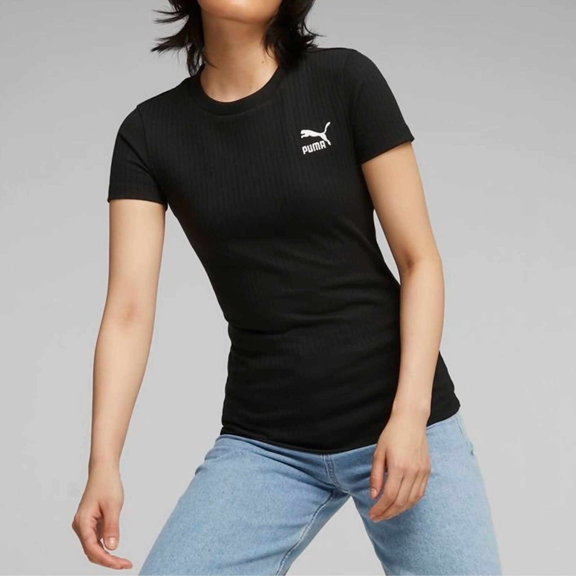 Футболка Puma Classics Ribbed Slim Tee — это воплощение классического стиля и комфорта. Выполненная из мягкого хлопка в рубчик, она идеально облегает фигуру, подчеркивая её достоинства. Элегантный круглый вырез и короткие рукава создают утонченный силуэт, а вышитый логотип Puma на левой груди добавляет модели особый шарм.