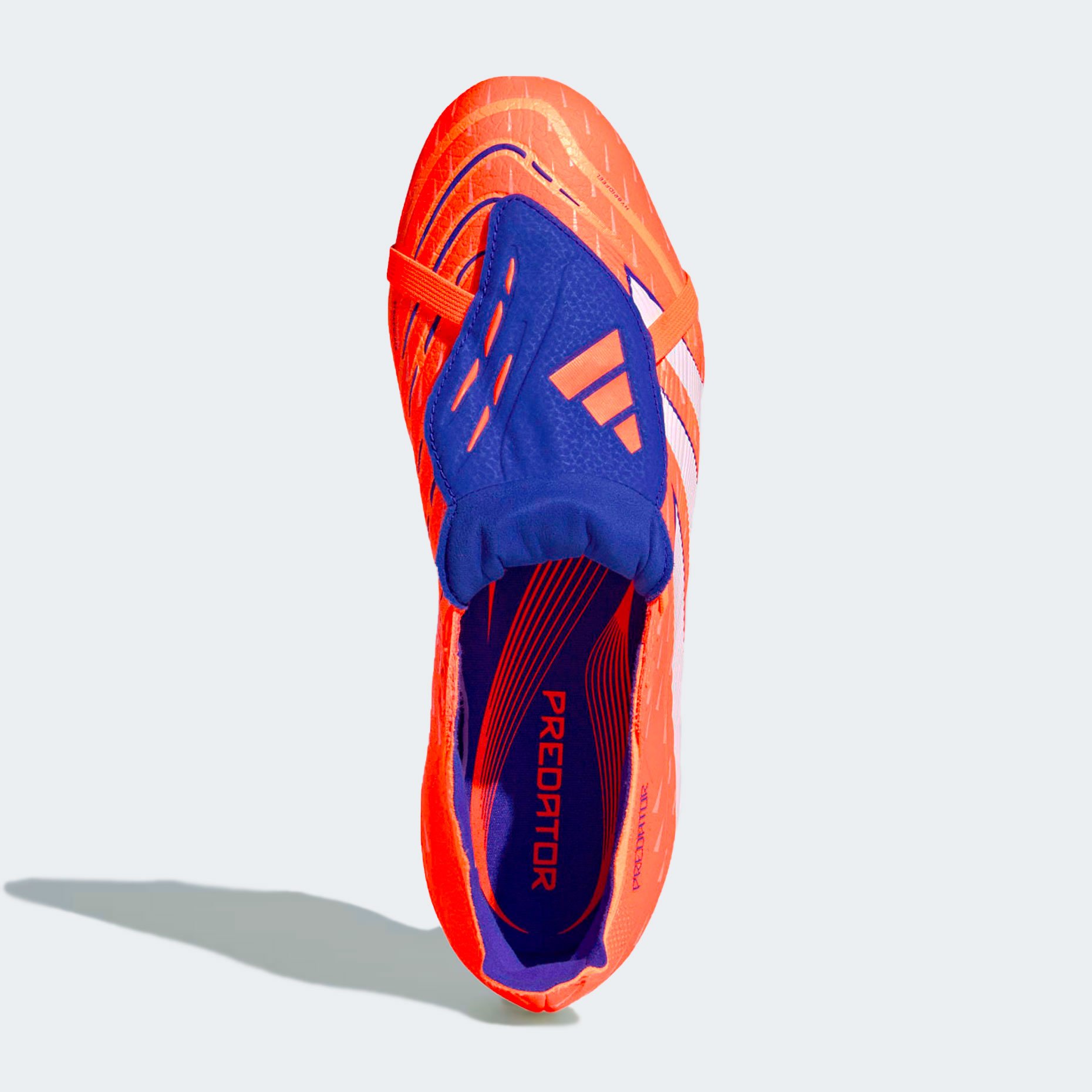 • Складной язычок с резинкой снижает давление на подъем при ударах и увеличивает площадь соприкосновения с мячом