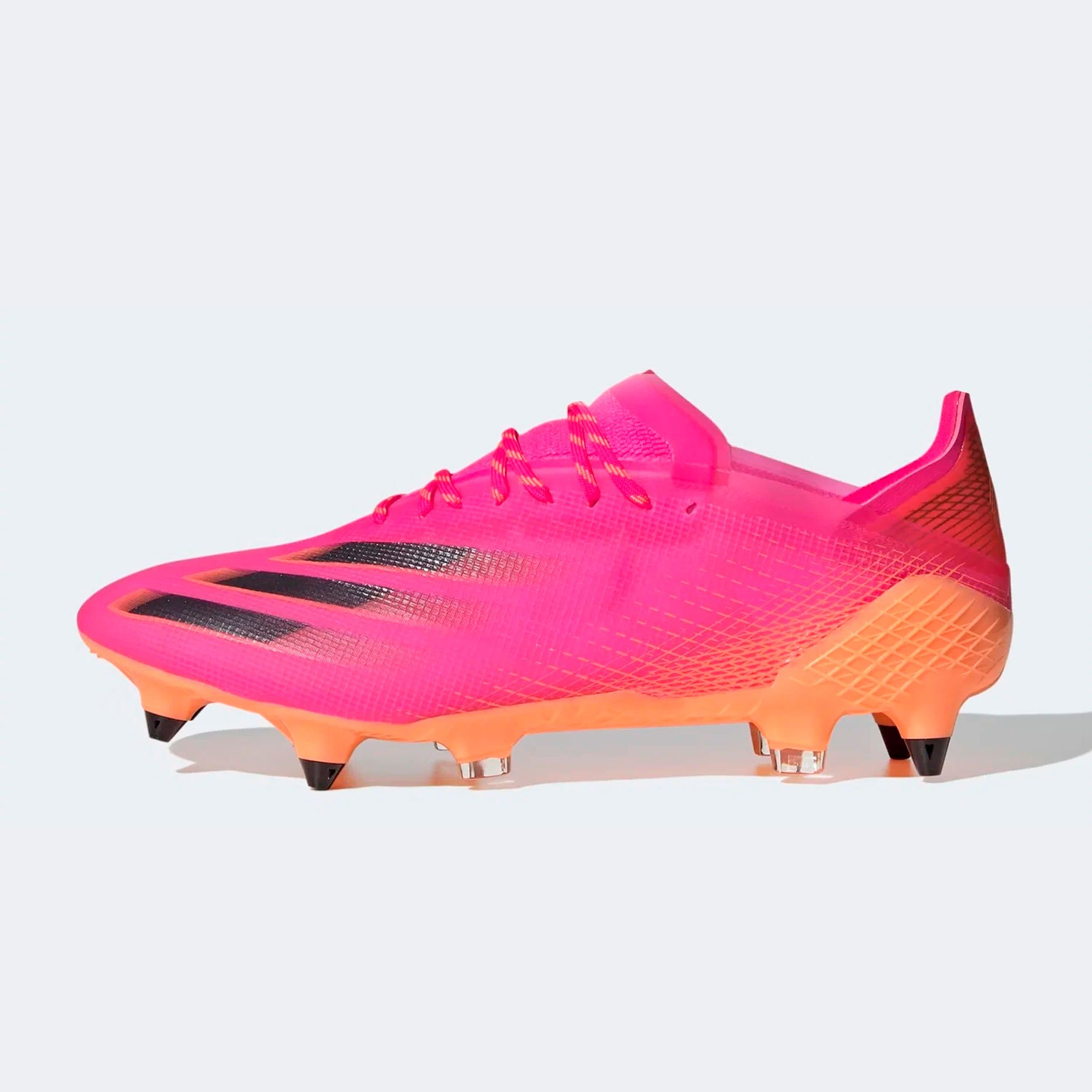 Бутсы adidas x Ghosted.1 профессиональная модель для игры на полях с мягким грунтом и натуральной травой. Цельная конструкция верха имеет эластичный язычок, который плотно прилегает к подъему. Асимметричная шнуровка увеличивает область удара. Созданный на поверхности рельеф усиливает ощущение мяча при контакте с ногой. При изготовлении верха используется синтетический материал Speedskin, благодаря которому бутсы отличаются максимально точной и комфортной посадкой, легкостью. Водостойкое покрытие, созданное на поверхности бутс, позволяет эффективно контролировать мяч в любых погодных условиях. Легкая подошва снабжена новой, оптимизированной конфигурацией шипов, благодаря чему игрок способен моментально ускорятьсяи менять направления. Поднятая передняя часть подошвы обеспечивает немедленное ускорение с места.