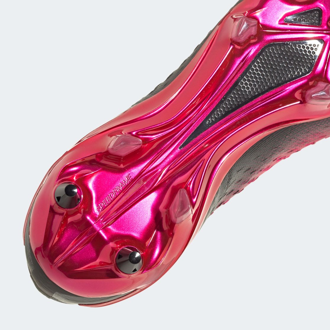 - Подошва Speedframe в сочетании со съемными металлическими шипами для мягкого газона обеспечивает легкость и отзывчивость. Она предлагает оптимальную комбинацию гибкости и жесткости, чтобы обеспечить максимальное ускорение и маневренность на мягком грунте.