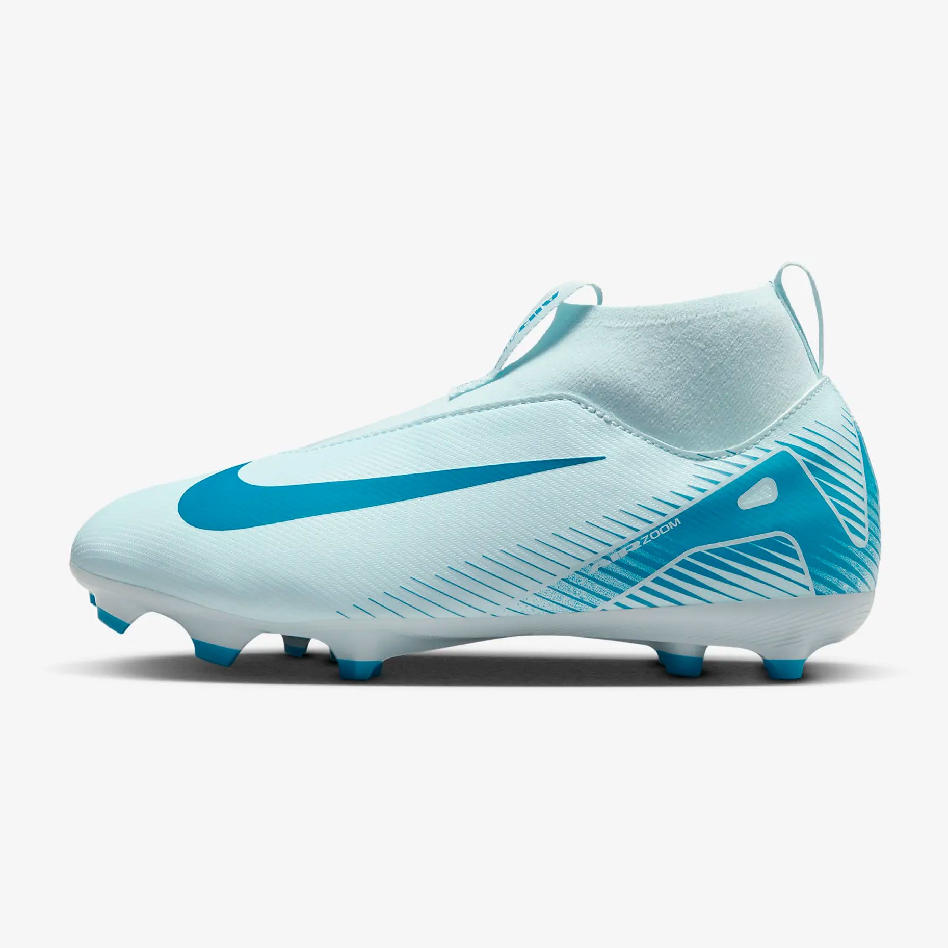 Детские бутсы Nike Air Zoom Mercurial Superfly 10 Academy FG/MG разработаны специально для начинающих футболистов и подходят для игры на полях с натуральным газоном и искусственных последних поколений. Верх выполнен с использованием технологии NikeSkin, что создает мягкую, но прочную поверхность для лучшего контроля мяча. Эта особенность помогает юным спортсменам сохранять уверенность при ударах и маневрах, эффективно взаимодействуя с мячом.