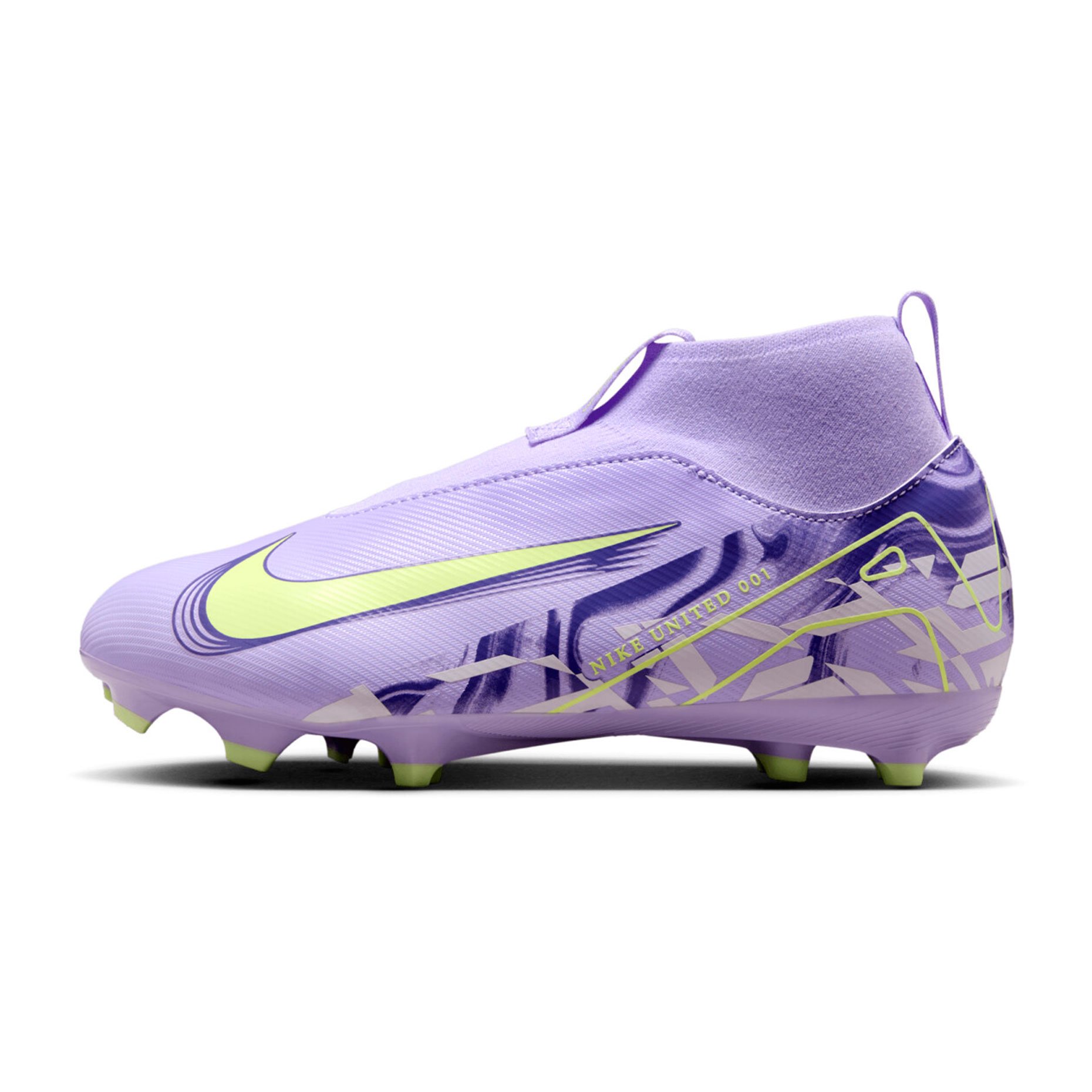 Детские бутсы Nike Air Zoom Mercurial Superfly 10 Academy Nu1 FG/MG — это модель для юных футболистов, которые хотят максимально реализовать свой потенциал на поле. Модель входит в эксклюзивную коллекцию Nike United 001 и отличается уникальным дизайном, который выделяет юного игрока среди соперников.