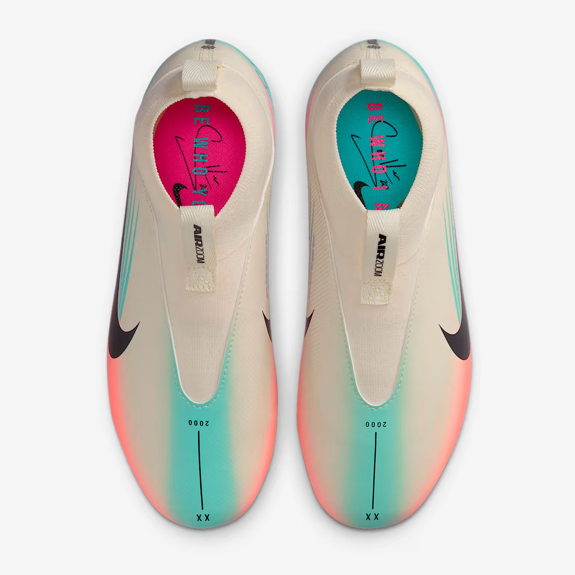 Детские бутсы Nike Air Zoom Mercurial Superfly 10 Academy «Sam Kerr» FG/MG — это тренировочная модель, созданная для юных футболистов. Бутсы подходят для игры на натуральных газонах и современных искусственных полях с высоким ворсом. Дизайн модели вдохновлён одной из лучших футболисток — Самантой Мэй Керр: нейтральная основа отсылает к пляжам Перта, а яркие полосы бирюзового, розового и оранжевого цветов символизируют океан, закат и пейзажи Западной Австралии.