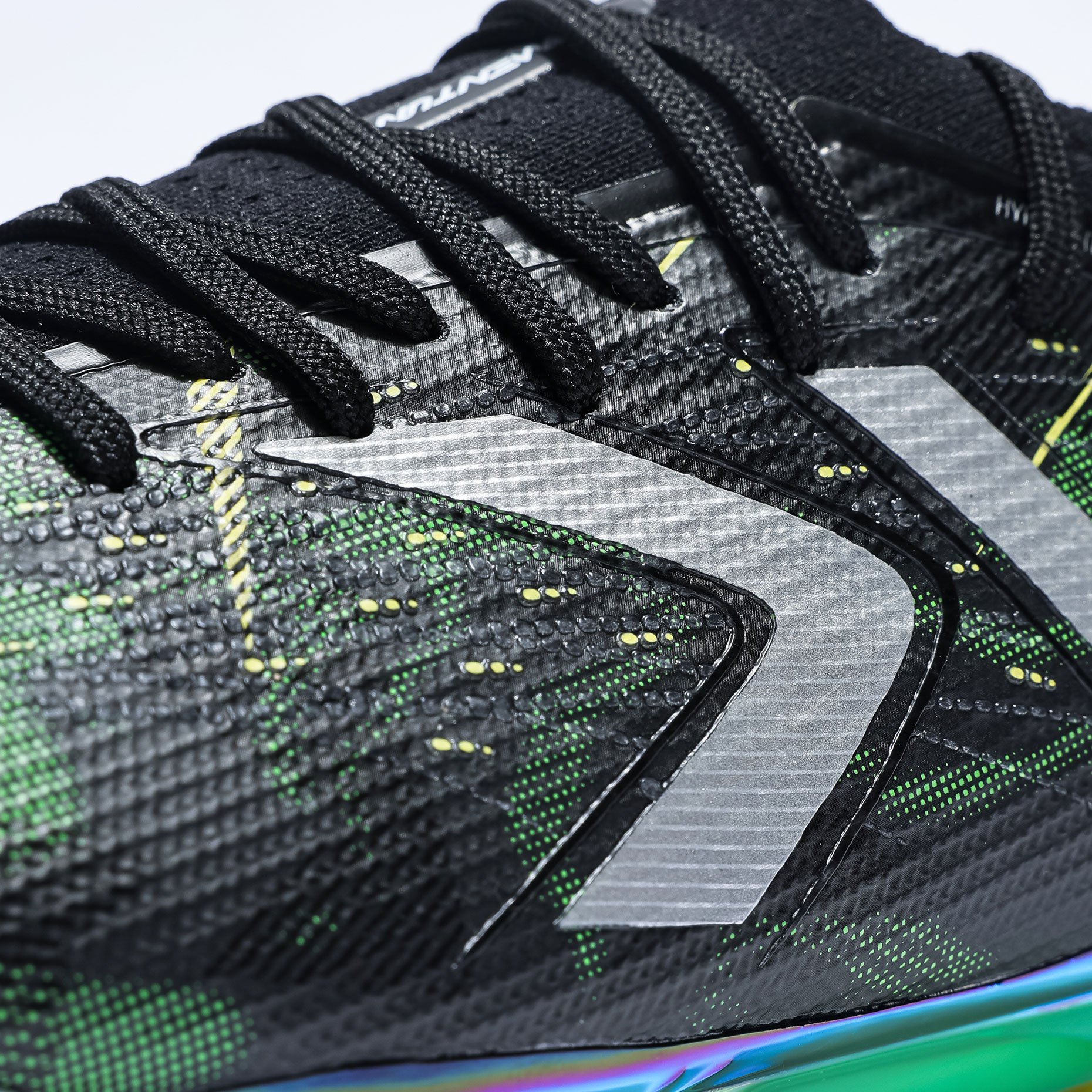 Комфорт и защита стопы обеспечены продуманной анатомической конструкцией: встроенная чашечка для пятки фиксирует и защищает пяточную кость, а мягкий воротник гарантирует плотную посадку, поддерживает лодыжку и предотвращает натирание. Подошва из лёгкого и прочного материала PEBAX отличается высокой гибкостью, а нейлоновая пластина в передней части улучшает возврат энергии. Амортизирующие вставки в средней и пяточной зонах эффективно поглощают удары, а противоскользящая стелька обеспечивает стабильность и комфорт.