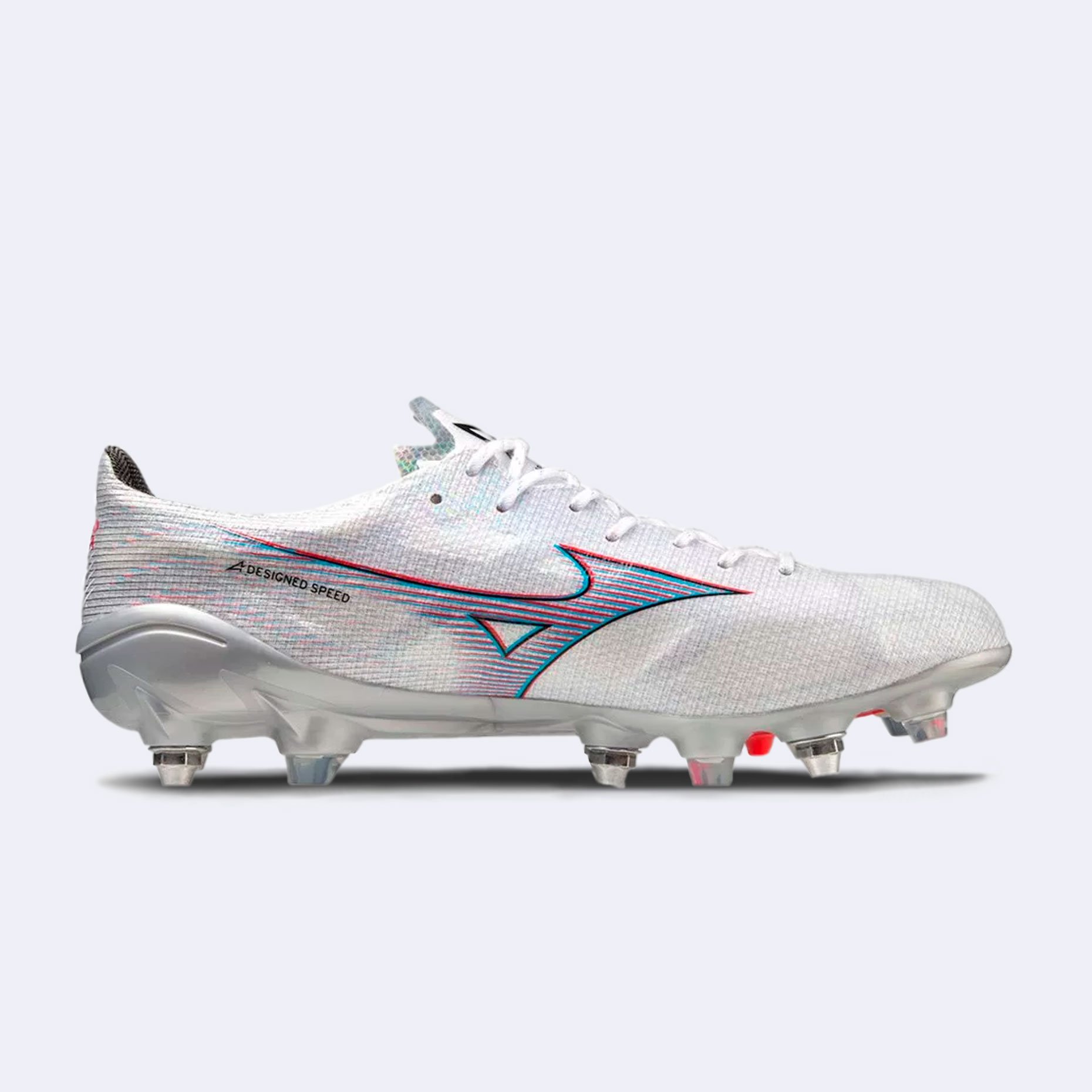 Mizuno Alpha — легкие скоростные бутсы, весом всего 195 грамм. Пена Mizuno Enerzy обеспечивает улучшенную амортизацию и возврат энергии, а тканая конструкция из синтетического материала Engineered Fit обеспечивает идеальную посадку. Полупанель KaRVO RS служит для возврата энергии и ускоряет спринт. Суперлегкая пластина на подошве с отличной гибкостью и продуманной комбинацией шипов. Сочетание металлических и пластиковых шипов дает необходимое спецпление на мягком грунте с натуральной травой.