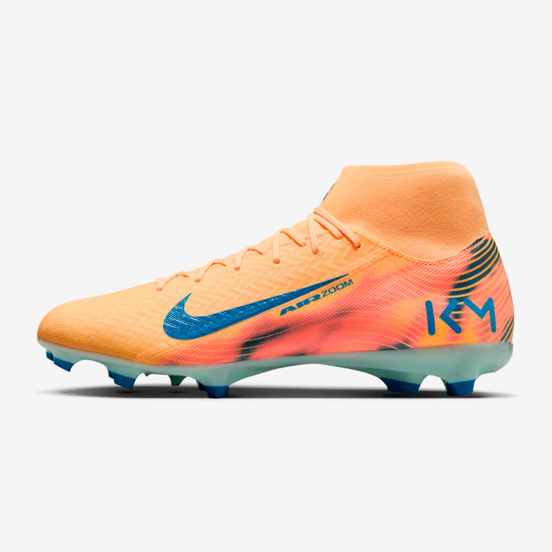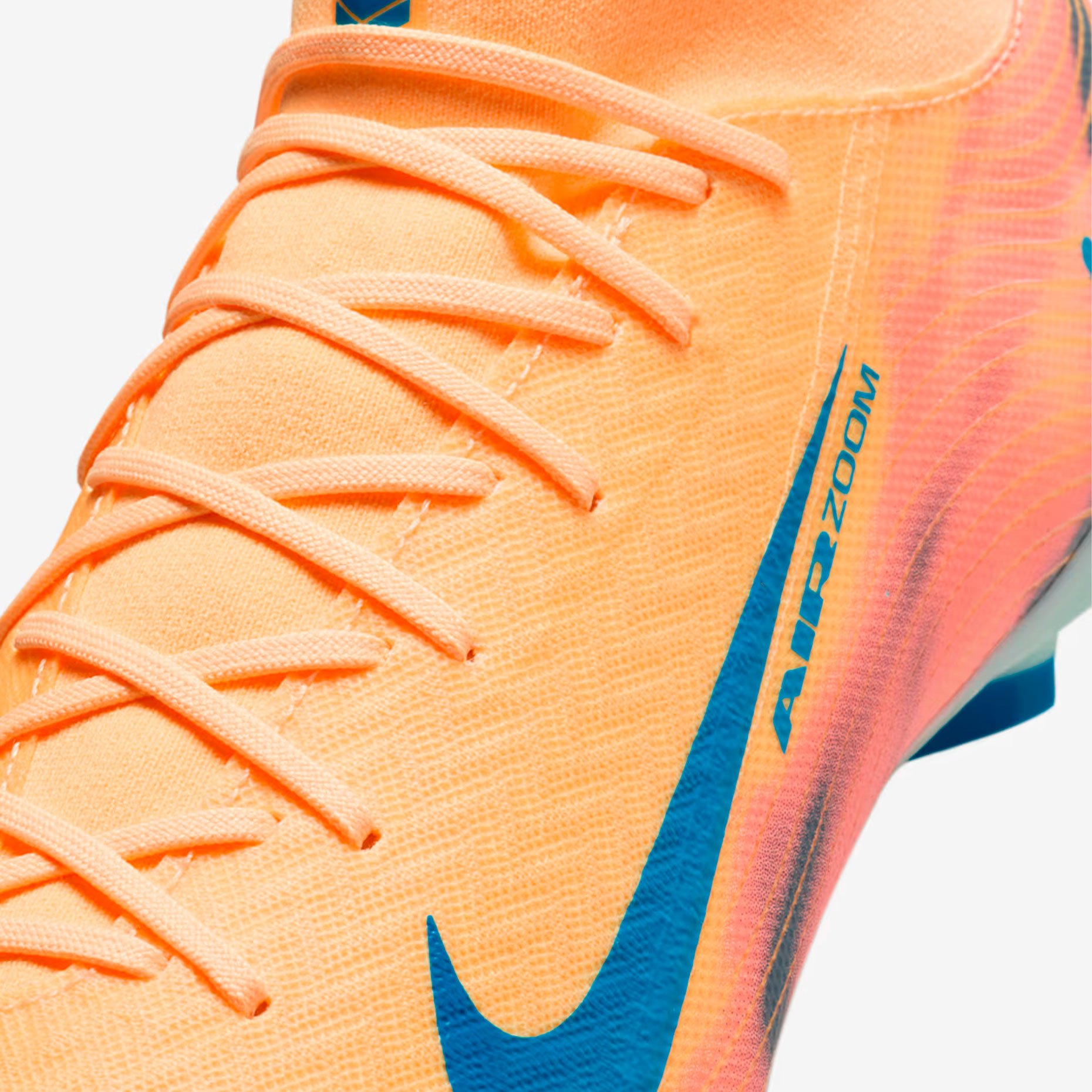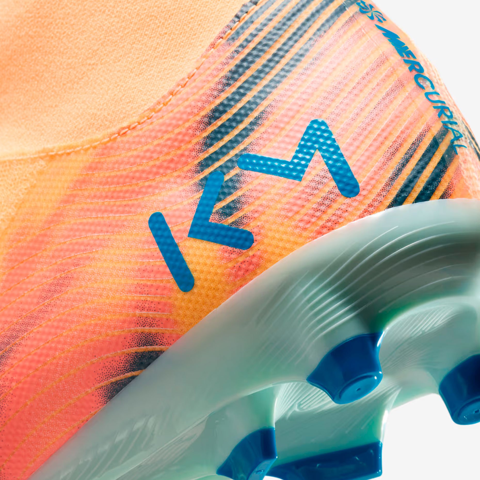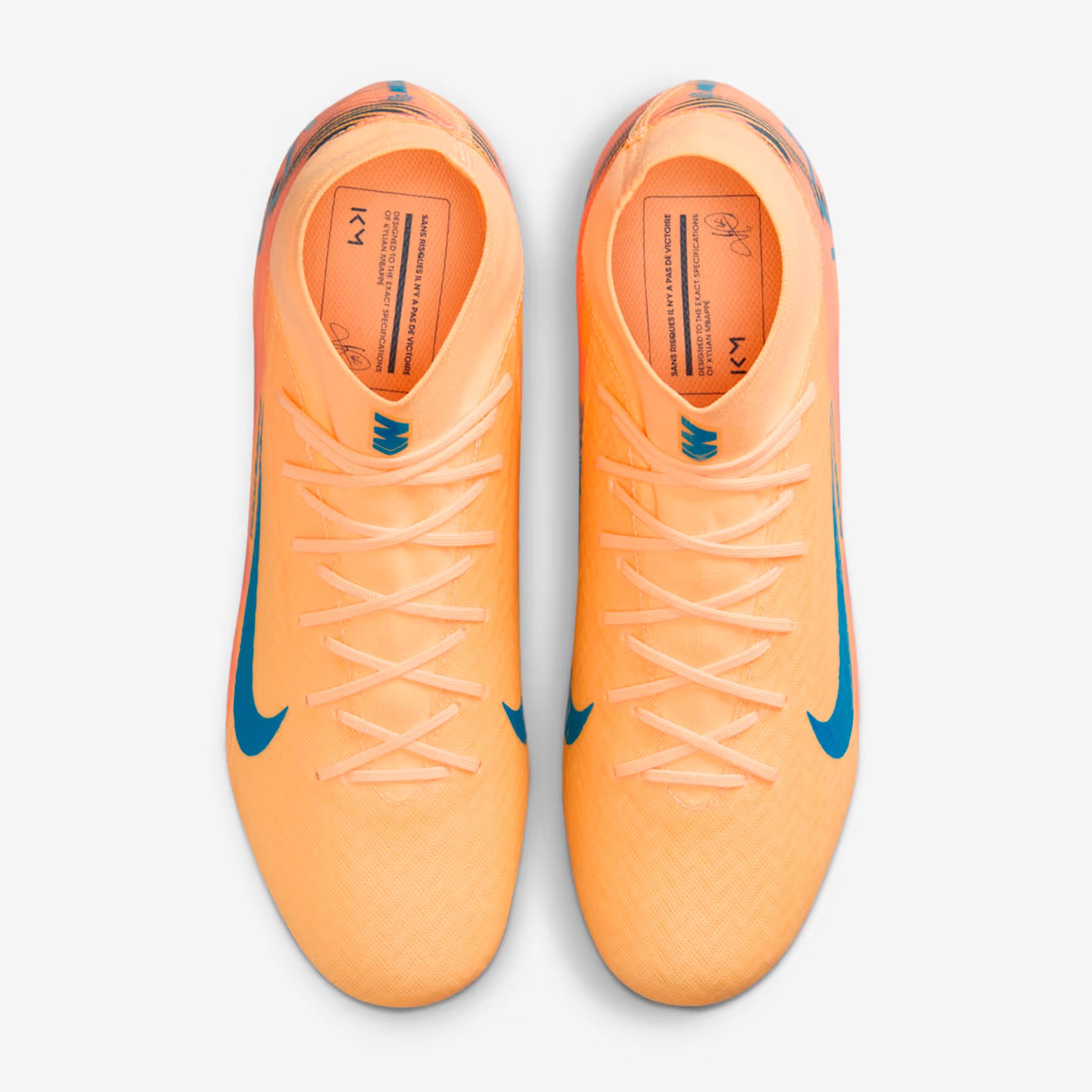 Дизайн бутс получил уникальную расцветку: верх выполнен в ярком оранжевом оттенке Melon Tint, а контрастные акценты в бледно‑голубом цвете использованы на логотипе Swoosh и подошве. Внутри бутс размещено вдохновляющее послание на французском: «SANS RISQUES IL N’Y A PAS DE VICTOIRE» («Без риска нет победы»).