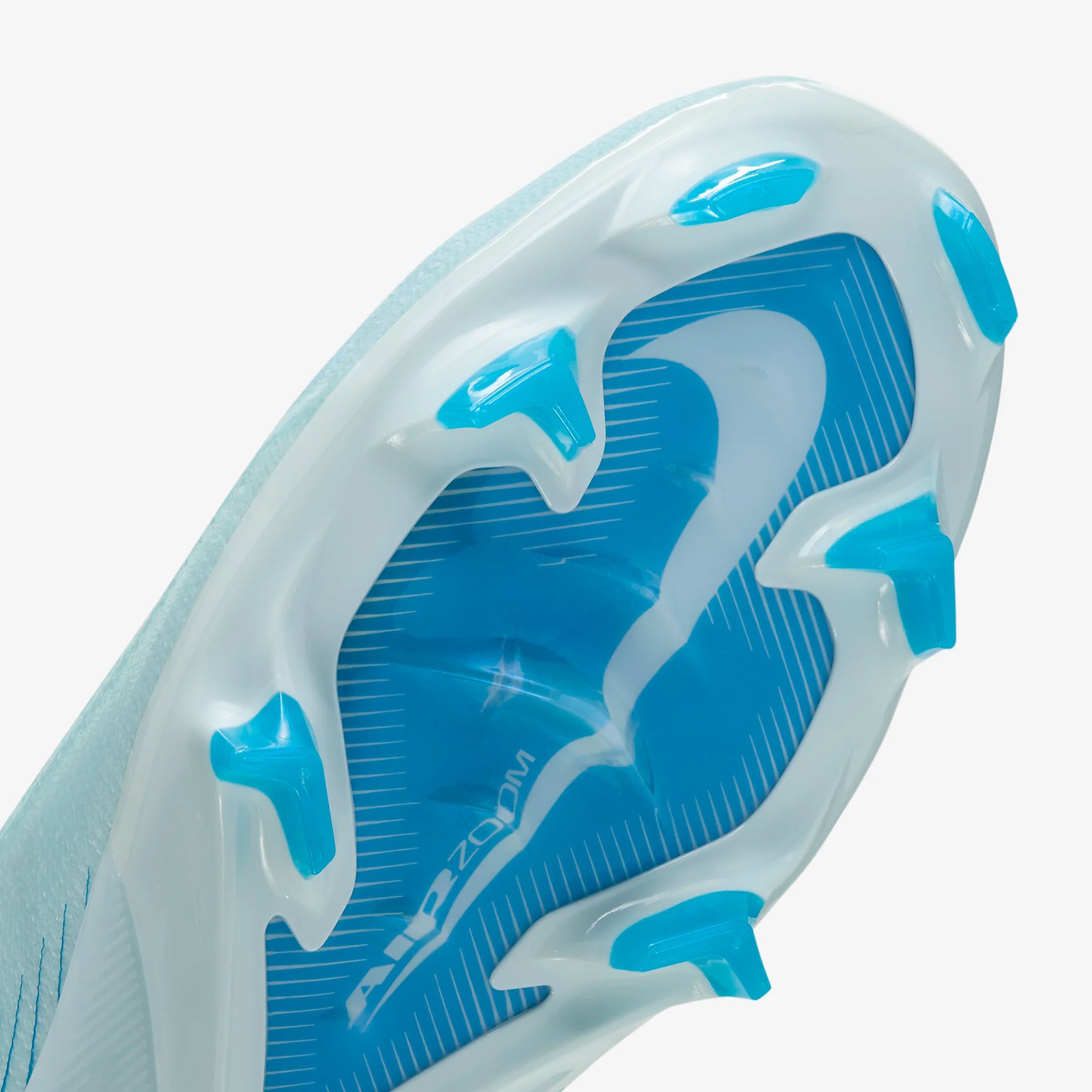 Подошва оснащена технологией Zoom Air, специально разработанной для футбола, чтобы обеспечить амортизацию и улучшенный возврат энергии при каждом шаге и рывке. Волнистая схема сцепления с использованием каскадных шипов создает большую площадь контакта, обеспечивая надежное сцепление при резких маневрах. Дополнительные грунтозацепы на подошве и усовершенствованный шеврон увеличивают устойчивость на поле, помогая игрокам выполнять резкие остановки и смены направления с полной уверенностью.