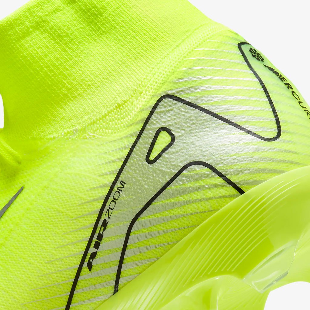 Лёгкий верх из синтетической ткани Flyknit делает эти бутсы невероятно удобными и практичными. Материал плотно прилегает к стопе, обеспечивая надёжную поддержку и позволяя игроку быть ближе к мячу. Эластичный воротник из того же материала придаёт дополнительный комфорт и стабильность, что делает Nike Mercurial Superfly 10 Pro FG отличным выбором для игроков, стремящихся к высоким результатам.